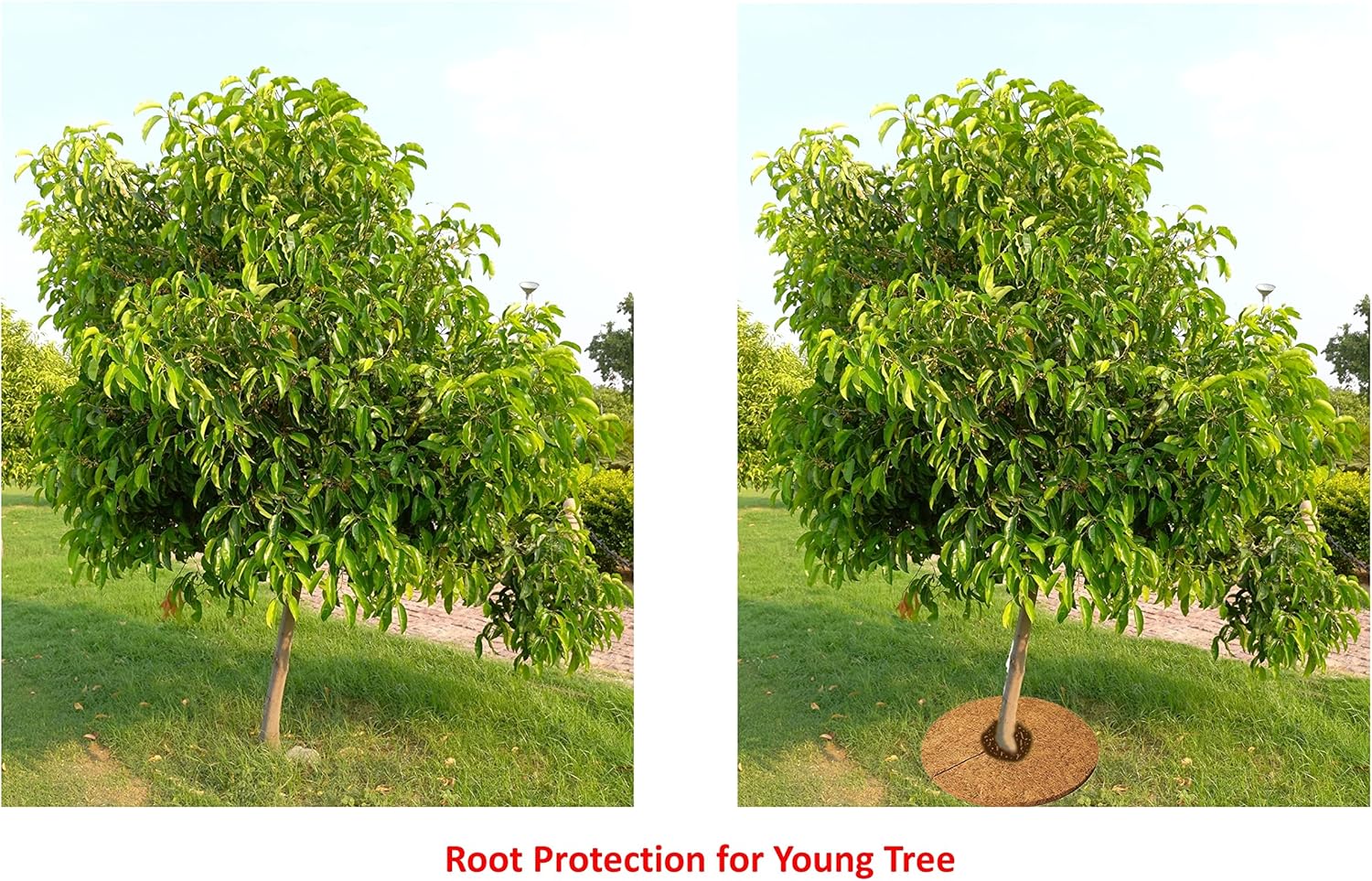 - 100% Natural Coconut Fiber Mulch Discs: Made from biodegradable coconut coir, these 18-inch round mats help retain soil moisture, suppress weeds, and regulate temperature around plants.
