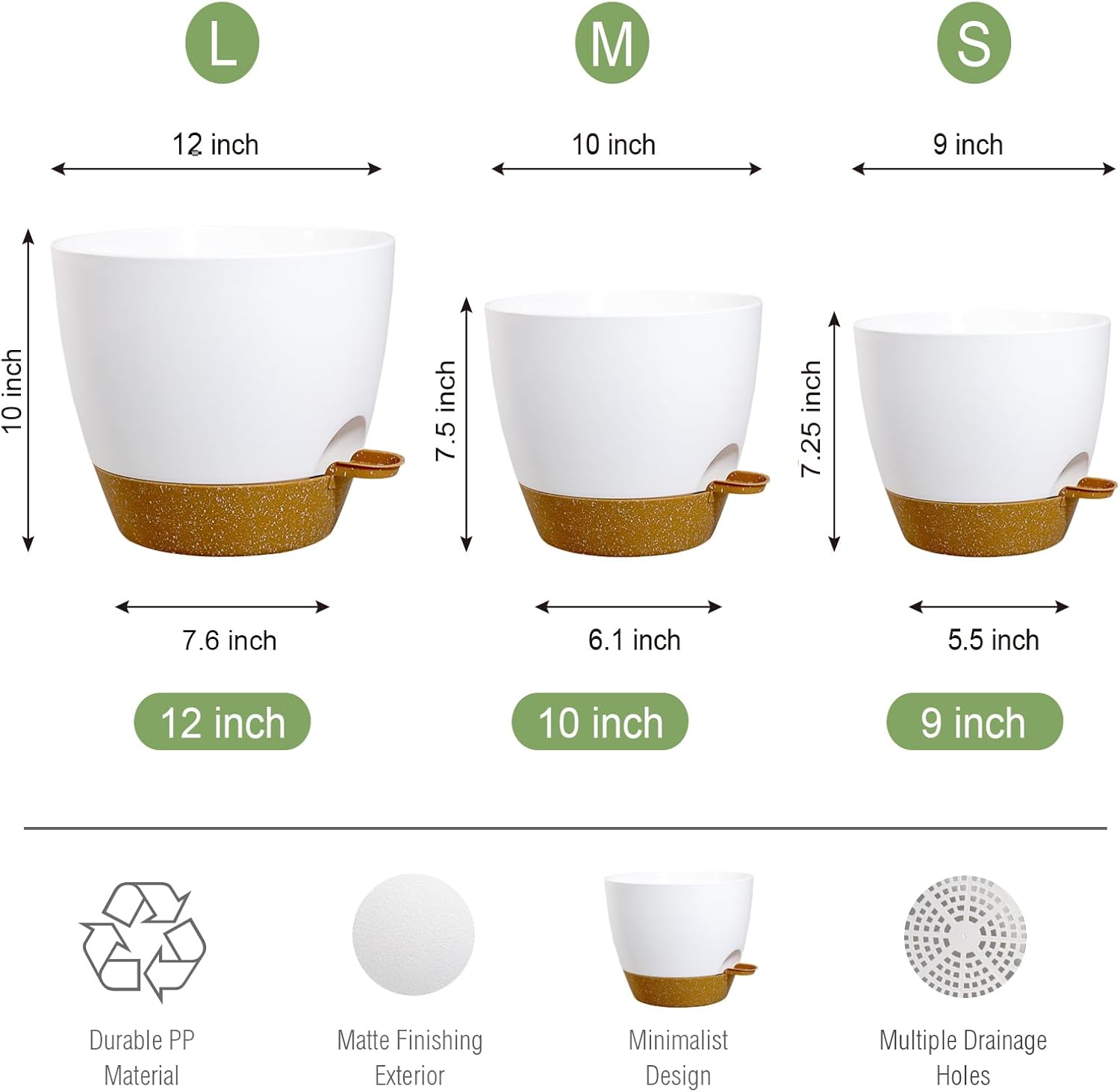 - Self Watering Pots: Combines 3 sizes (12/10/9 inch) for repotting and growing large plants indoors or outdoors.