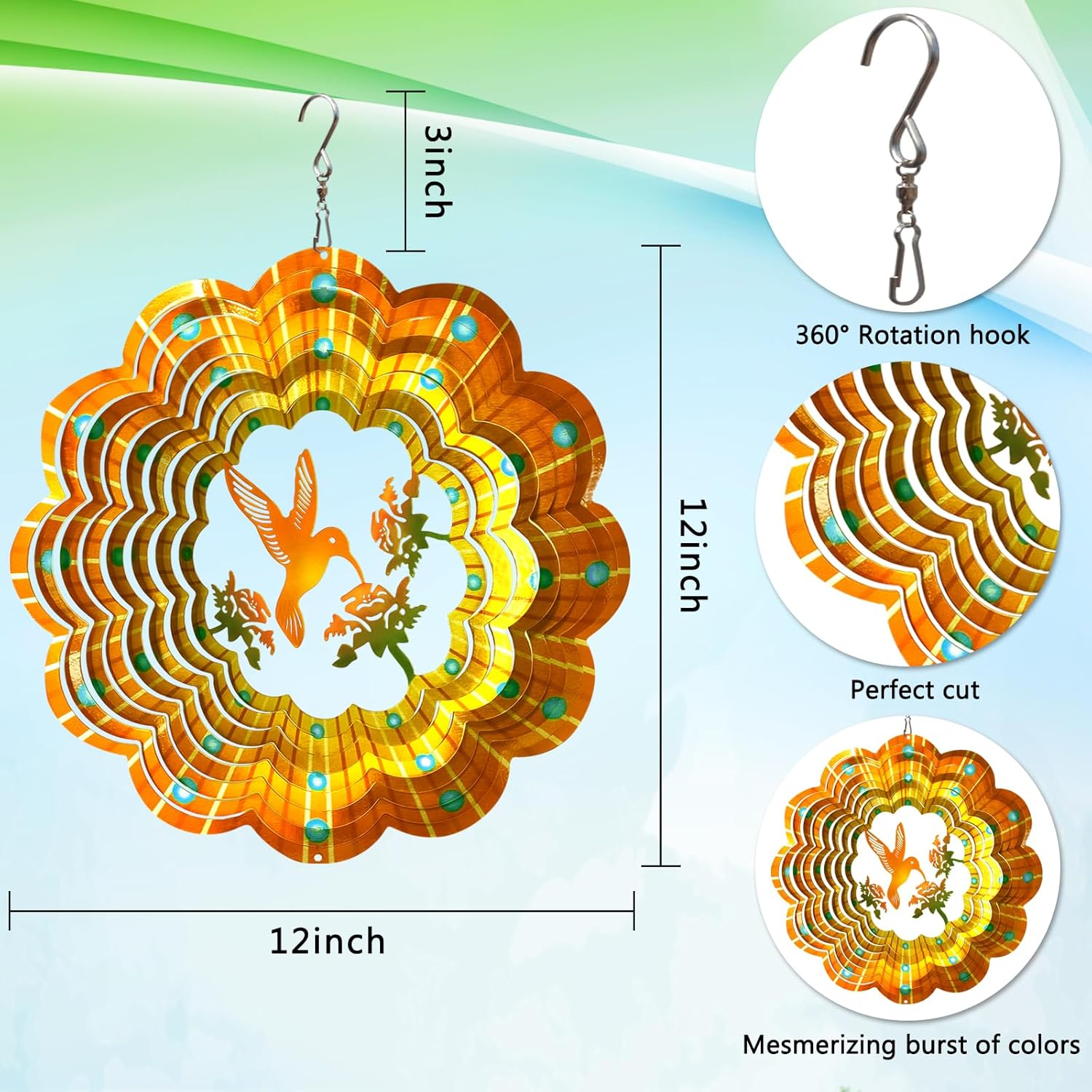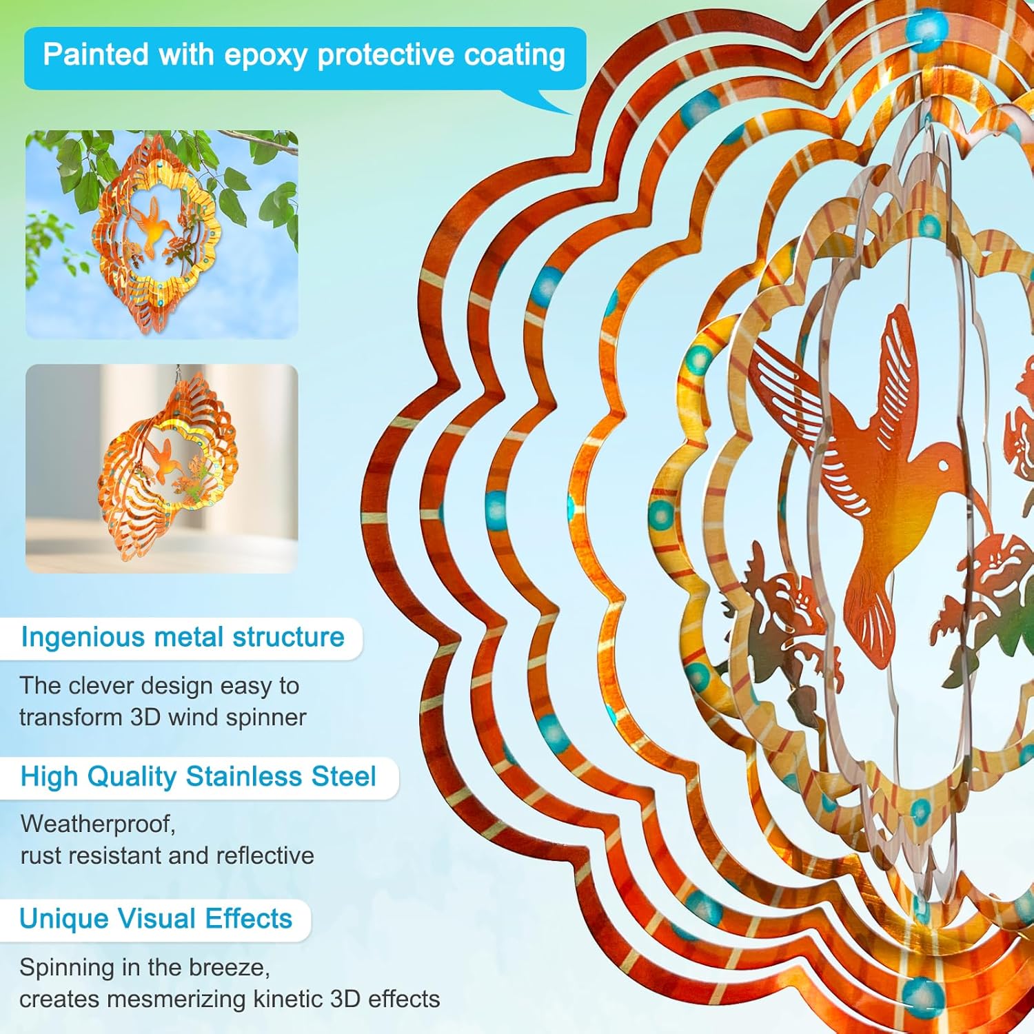 - 【Kinetic Hummingbird Wind Spinners】The hummingbird kinetic wind spinner has a stunning hummingbird design that the unique flow of light surface adds vibrant colour and movement! This 3D hummingbird wind spinner will add charm to your garden or yard.