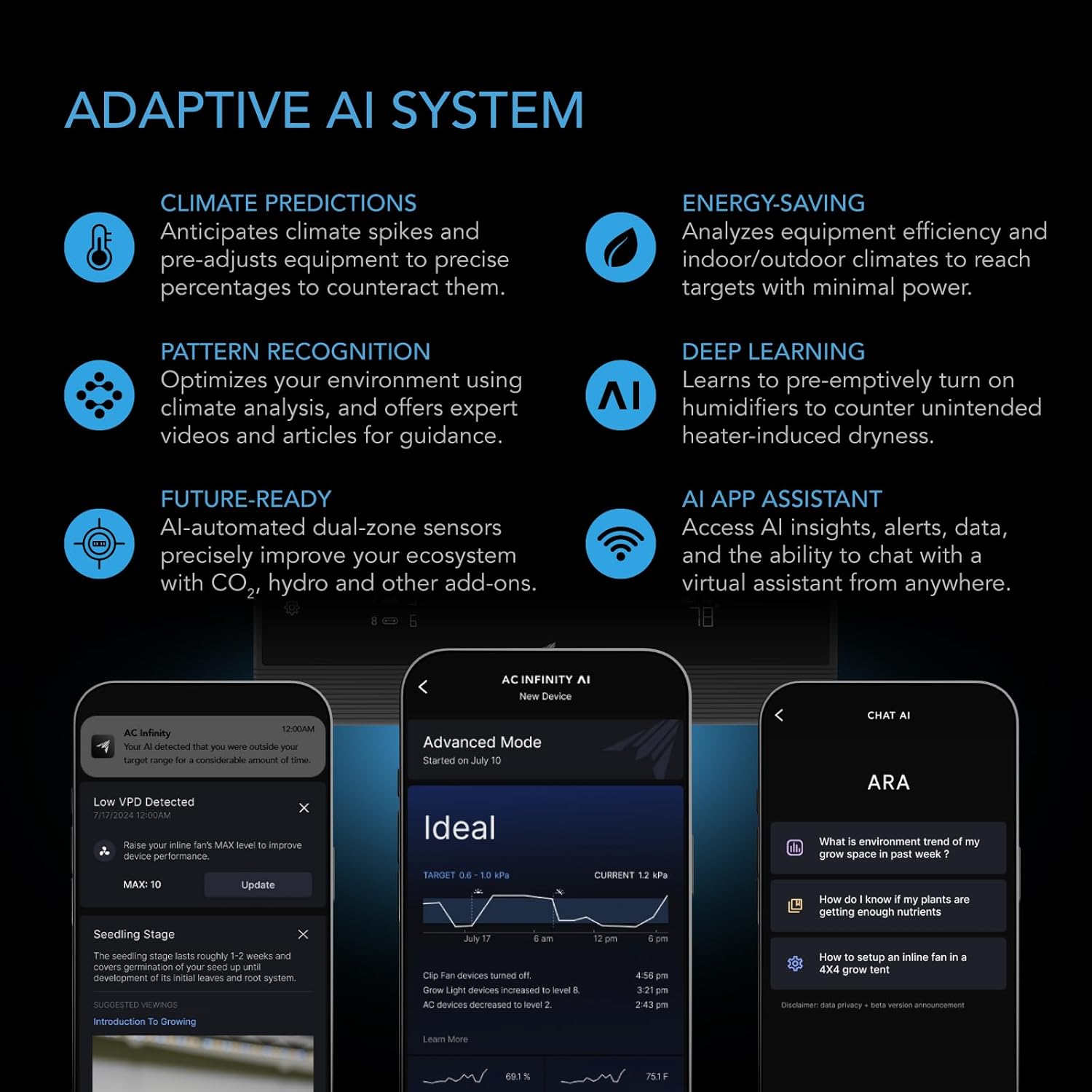 - AI-driven controller predicts climate shifts using real-time and historical data, auto-adjusting connected devices for optimal grow conditions.