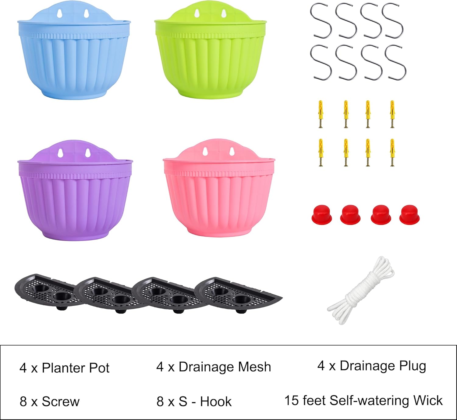ORIMERC 4 Pcs Colorful Resin Wall Hanging Planter Pot Vertical Garden Living Wall Mount Window Hang Indoor Outdoor for Kitchen Herb Balcony Railing Shelf Fence Bedroom Trellis Décor