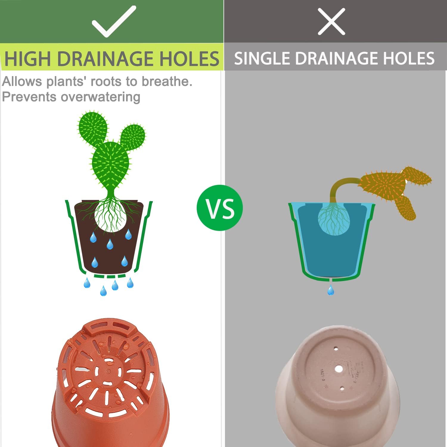 - [Small Planters with Drainage Holes] We improved the drainage holes, thickened the bottom, plants can breathe freely, prevent excessive watering, maintain soil drainage and ventilation, and ensure that plants do not rot roots. With trays to catch the extra water and keep the table clean.