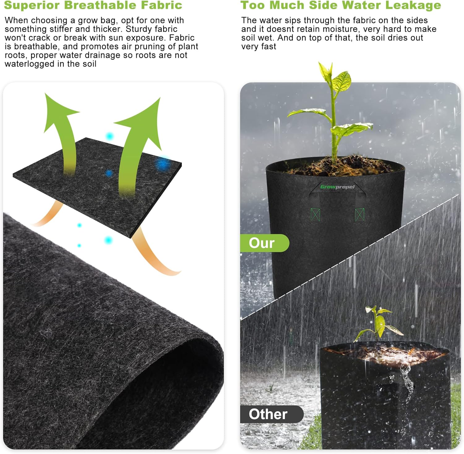 - Use It For Years: Sturdy fabric won't crack or break with sun exposure. Growpropel grow bags can be used and reused for years