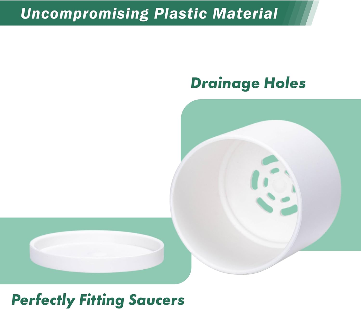 - Drainage holes at the bottom of the pot, with seamless design detachable, and perfectly fitting saucers included.