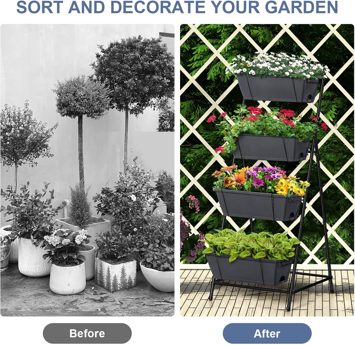 - 【4 Tier Raised Garden Bed】The vertical garden planter comes with 4 planting boxes that provide you with enough space to grow and divide vegetables, fruits, flowers and herbs to keep your garden organized. You can place it on your patio, yard, garden, and indoor room to enjoy planting anytime and anywhere.