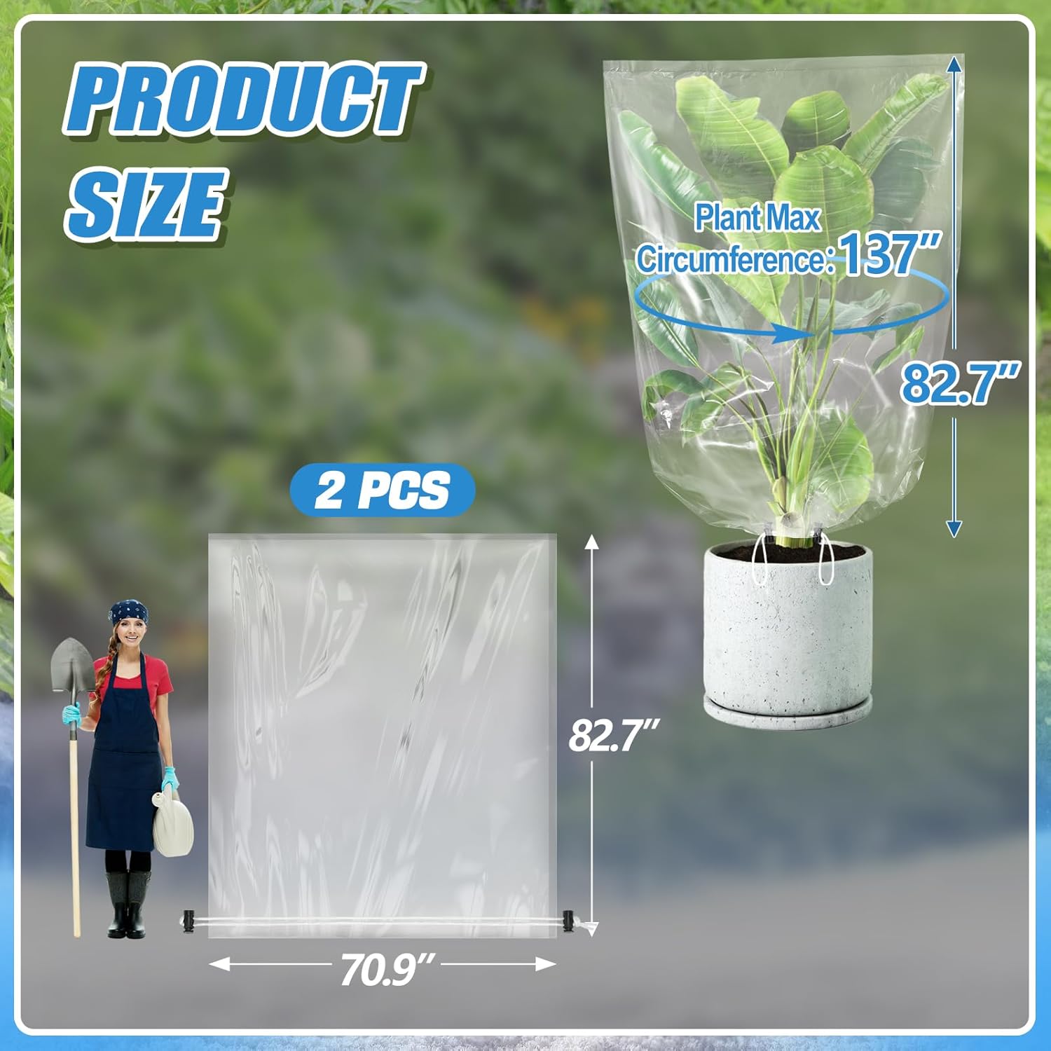 - [Extra Large] Each plastic plant cover measures 70.8" x 82.7" and is suitable for various large plants outdoors, such as large shrubs, mango trees, lemons trees, palm trees, and other fruit trees. 2 pieces come in a set, which can meet the needs of large plants.