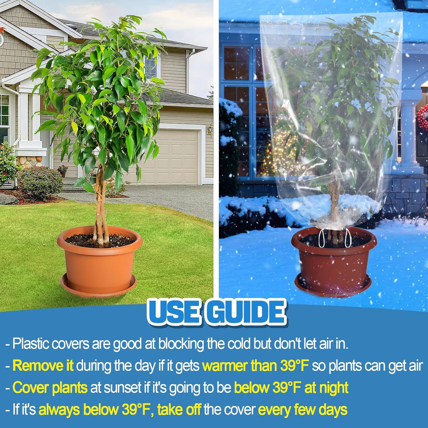 - [High-quality PE Film] These cold protection covers are composed of PE greenhouse film. Compared with the common non-woven made or PVC-made products on the market, our products are durable and waterproof, with excellent light transmission and heat insulation.