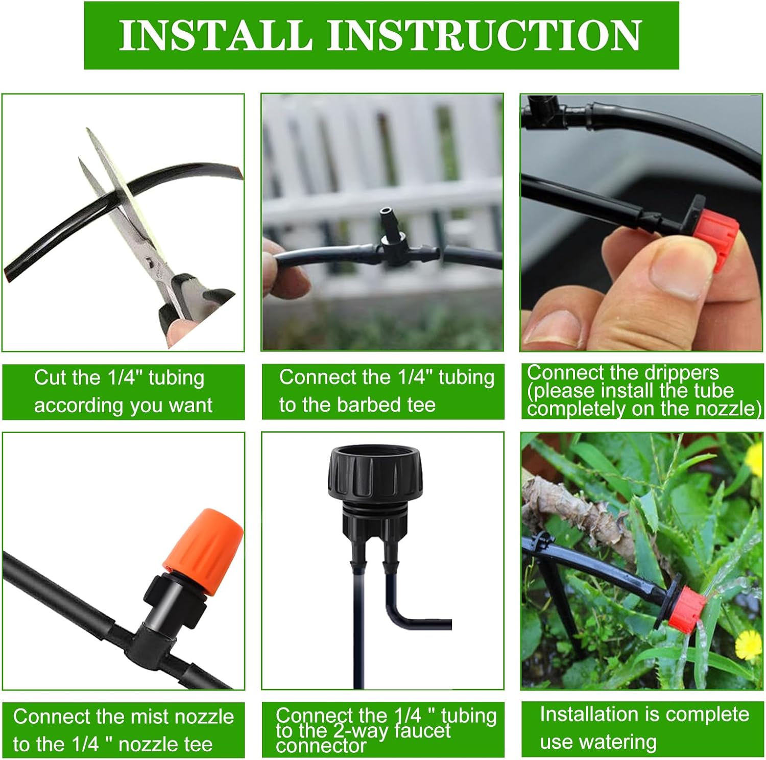 - Easy Installation: No digging or plumbing skills required! Just cut the tube, connect the nozzle or dripper to the fitting and turn on the faucet to start the plant drip irrigation system.