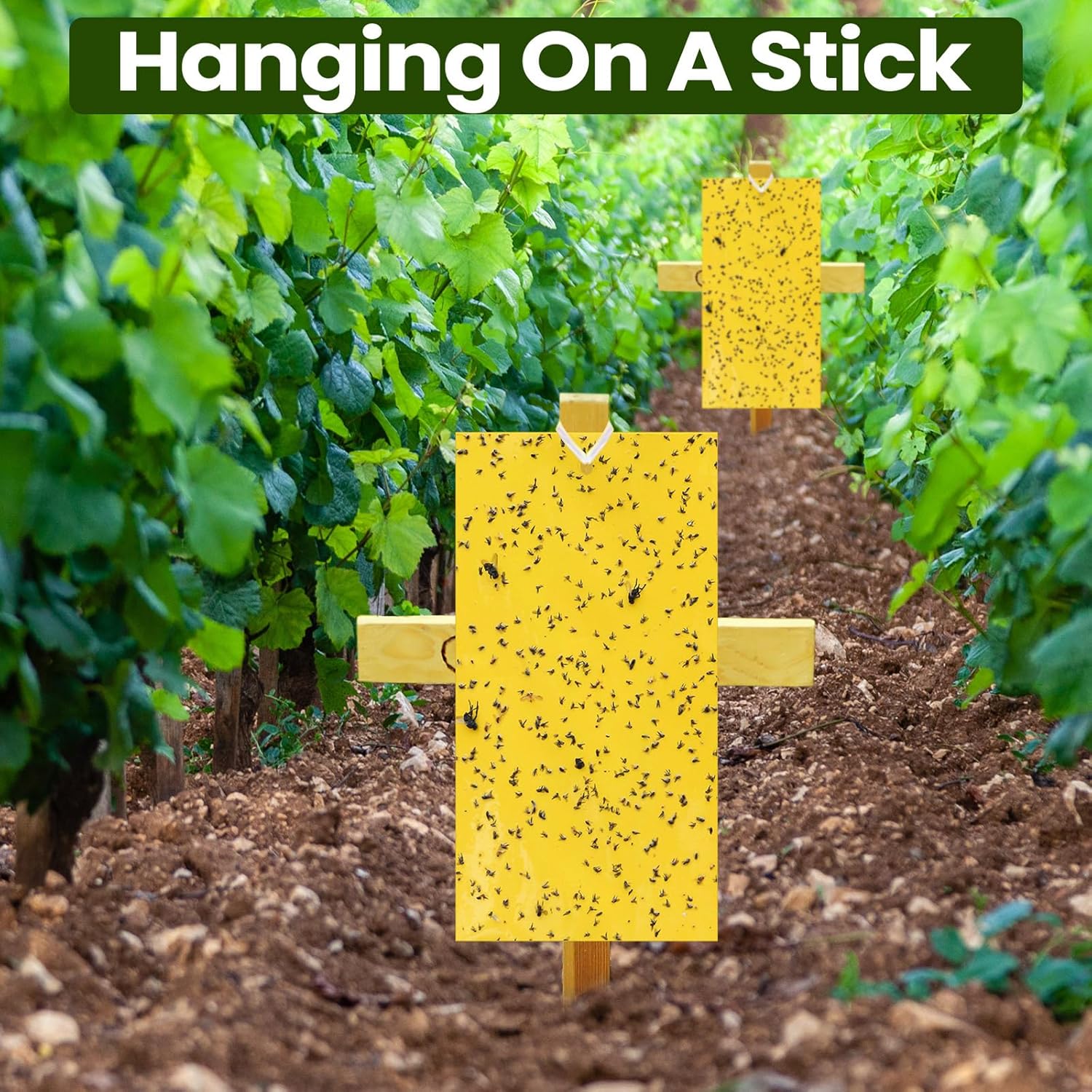 - Double Sided Stickiness: our yellow sticky traps are designed to be double sided, widely capture the most pests, includes white flies, leaf miners, fungus gnats, shore flies, midges, mosquitoes, and other flying insects, you can place them in the garden, lawn, yard, next to the trash can and so on
