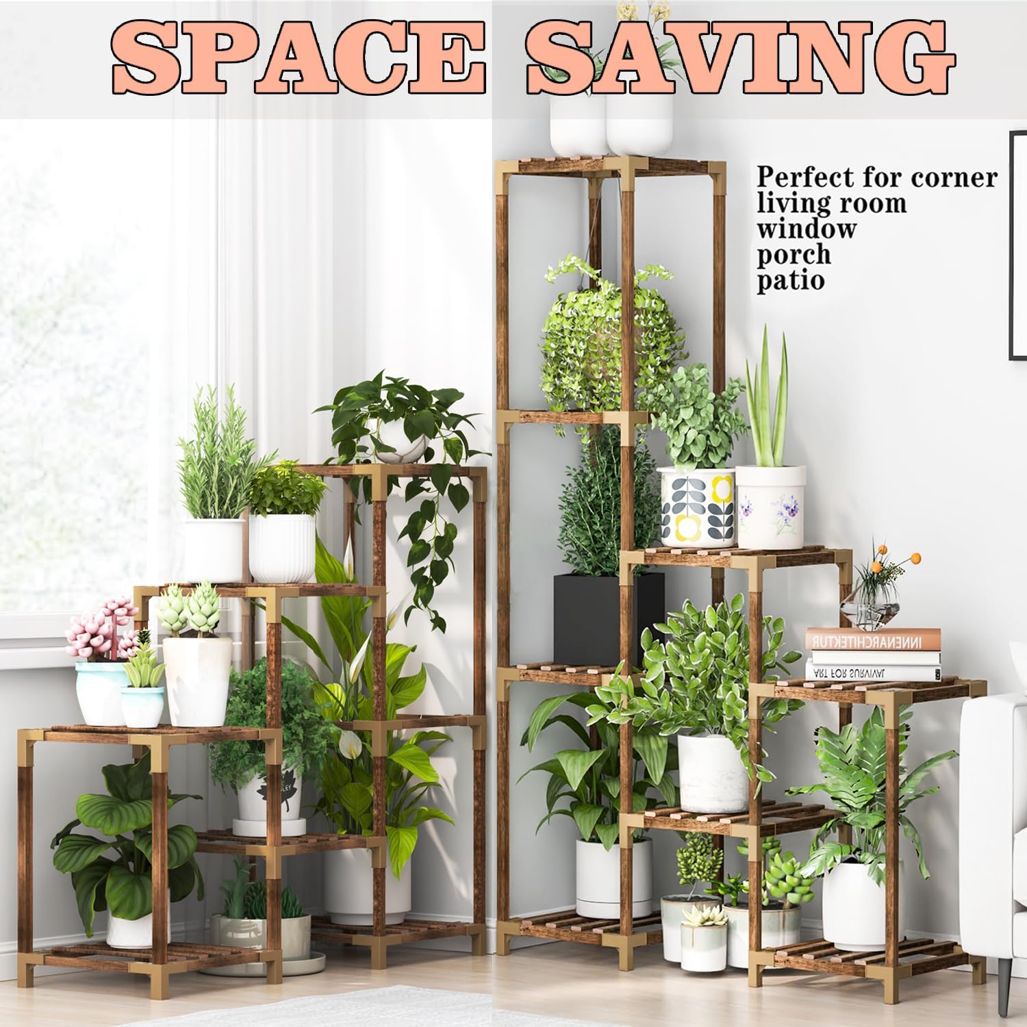 - Sturdy Material: HOMKIRT plant stand is made of eucalyptus wood, known for its strength and stability. All shelves have been carbonized under 600℉ high temperature, making them weatherproof. It’s sturdy enough to be used indoor or outdoor.