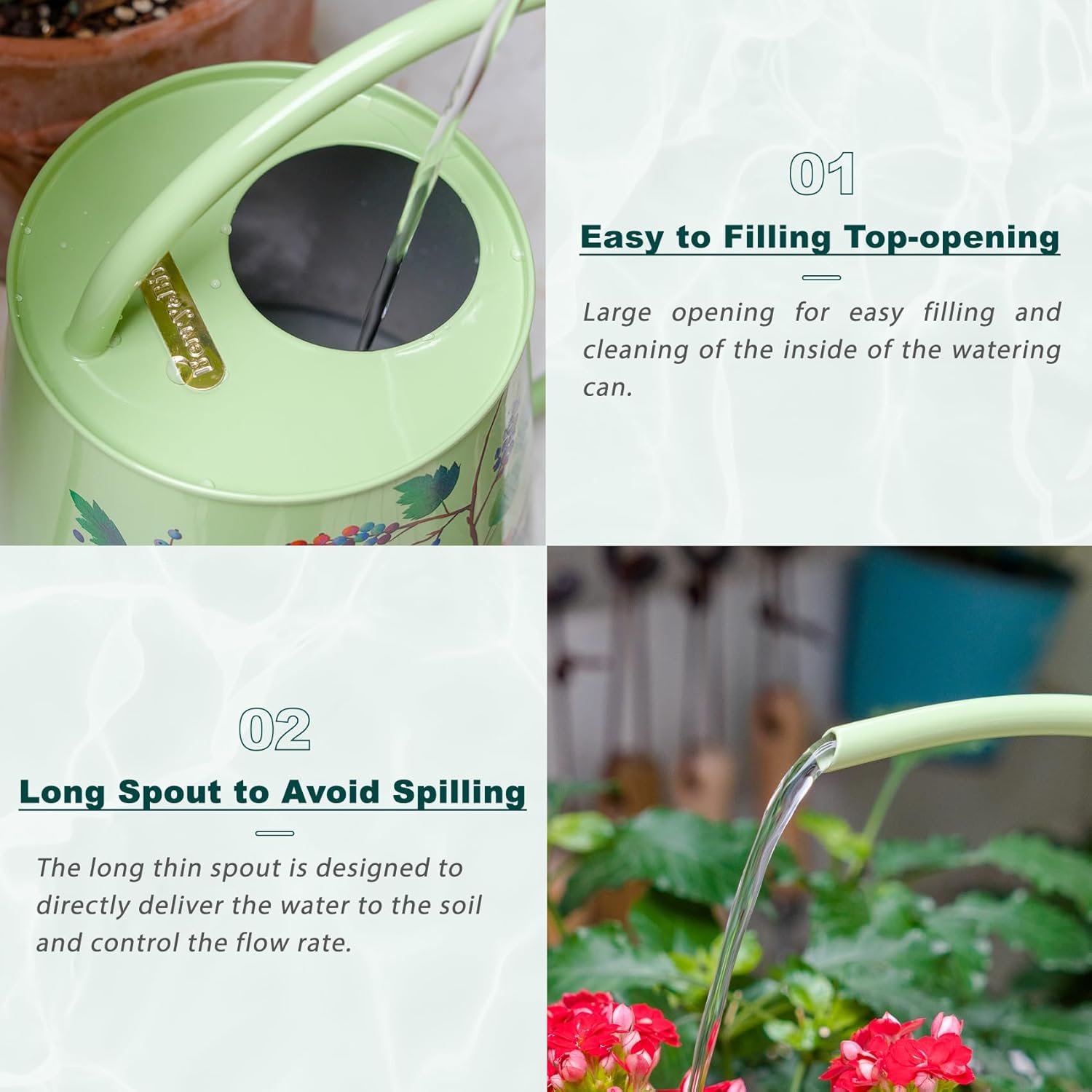 - MAKES IT EASY TO IRRIGATE: The 8.4-inch long spout can accurately transport water directly into the soil, So it is easy to penetrate water to the bottom of plants without splashing and wasting, Perfect for hanging plants, wall-mounted plants or general house plants. The semi-open top design of this stainless steel sprinkler makes it easy to add water and clean the jug . Water your plants quickly and easily to keep them healthy and thriving.