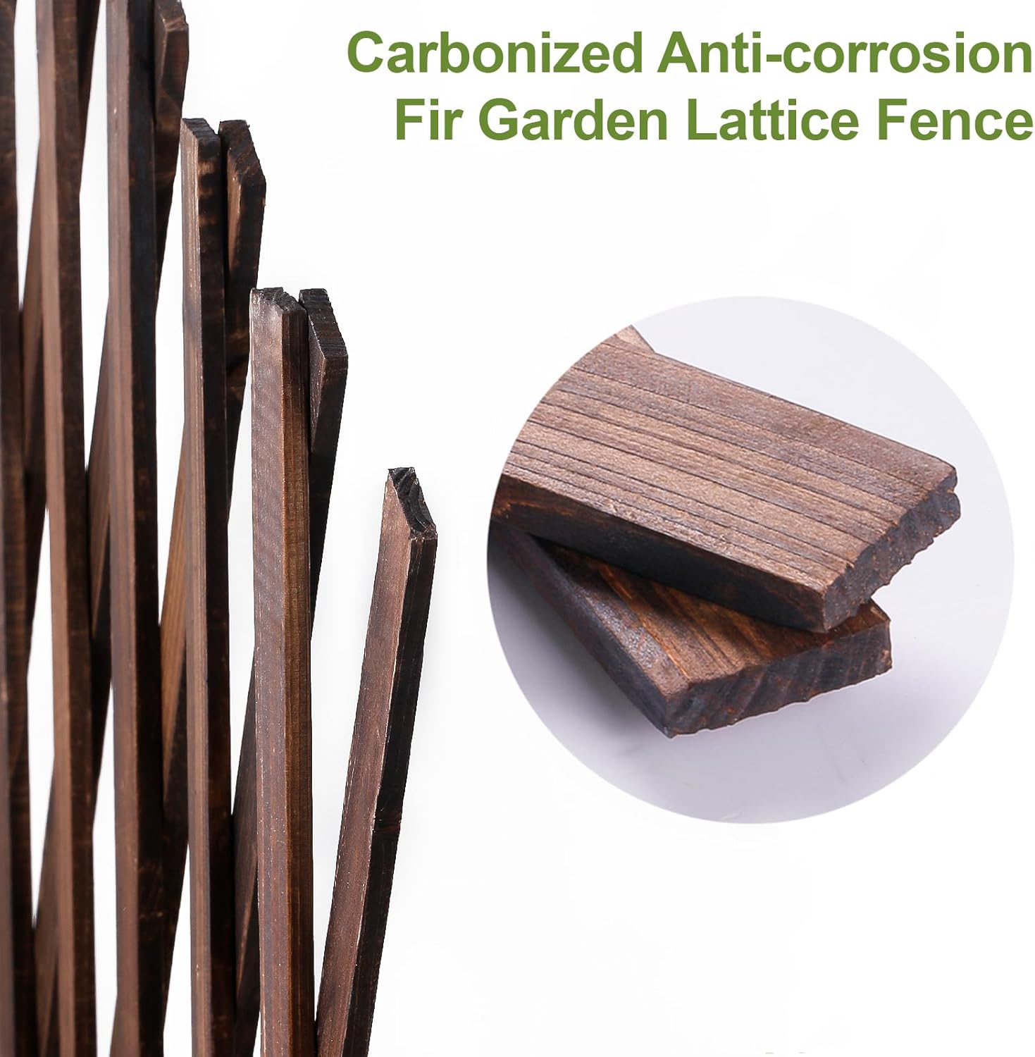 - 【Natural Wooden Trellis】: The carbonized lattice is waterproof, durable, and aesthetically pleasing, retaining the natural wood grain to enhance its visual appeal. Ideal for light climbing plants and decorative use, it suits a variety of settings such as balconies, gardens, courtyards, and both indoor and outdoor spaces, combining both function and style.
