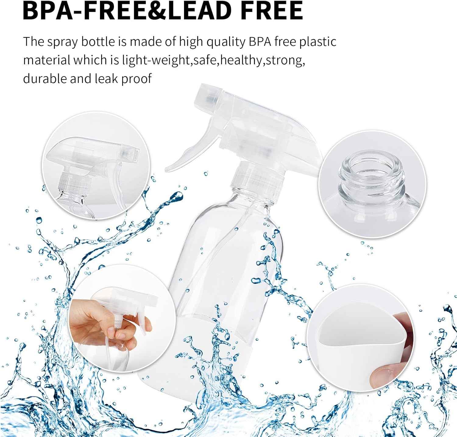 - High security: BPA & LEAD FREE .Our refillable spray bottles have reached food safety level to meet your demand for storing safely and effectively. The bottle body is made of transparent glass, which is with high hardness, corrosion resistance, durability and not easy to deform. No matter what liquid is loaded, it will not produce chemical corrosion reaction, which is quite safe.