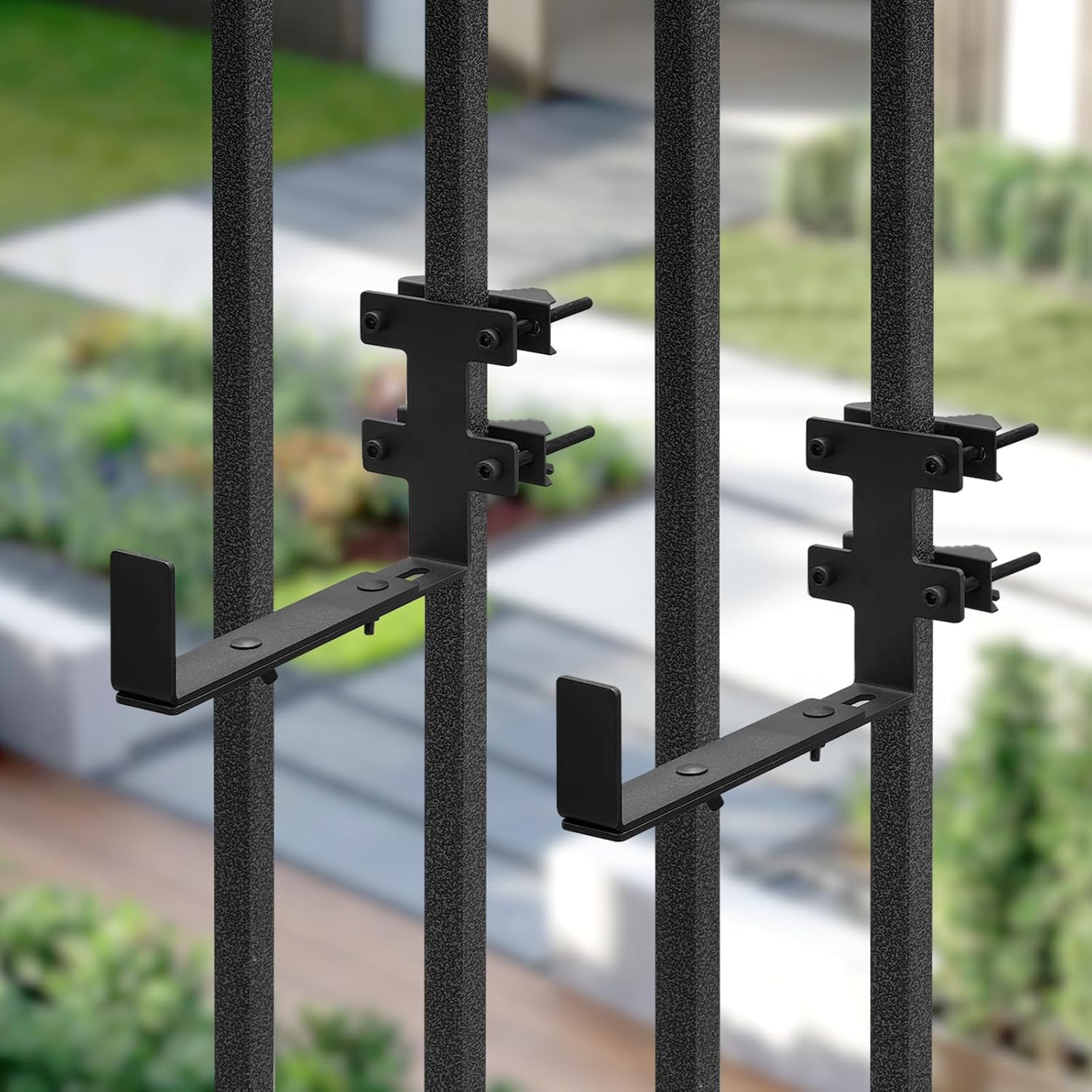 Planter Box Bracket, Flower Box Holder Circular and Square Railings Brackets,Adjustable Deck Railing Planter Box Holder for Patio Garden Fence Pergola Balcony (4 Pieces)
