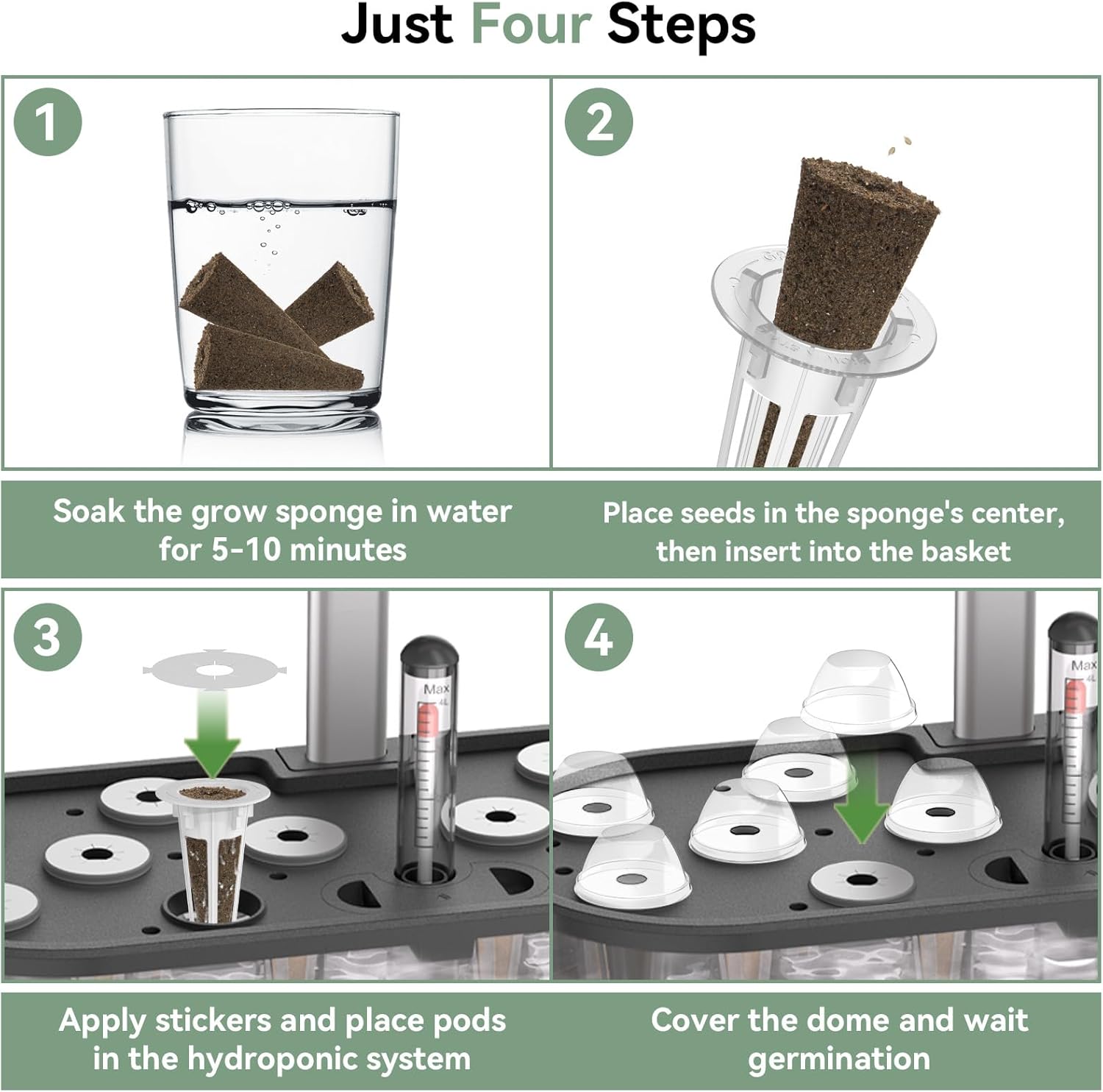 LYKOCLEAN 68pcs Hydroponic Pods Kit for Aerogarden and idoo, Grow Anything Kit with 30 Grow Sponges, 12 Grow Baskets, 12 Grow Domes, 12 Pod Labels, 2 Plant Food, Compatible with Hydroponics for All