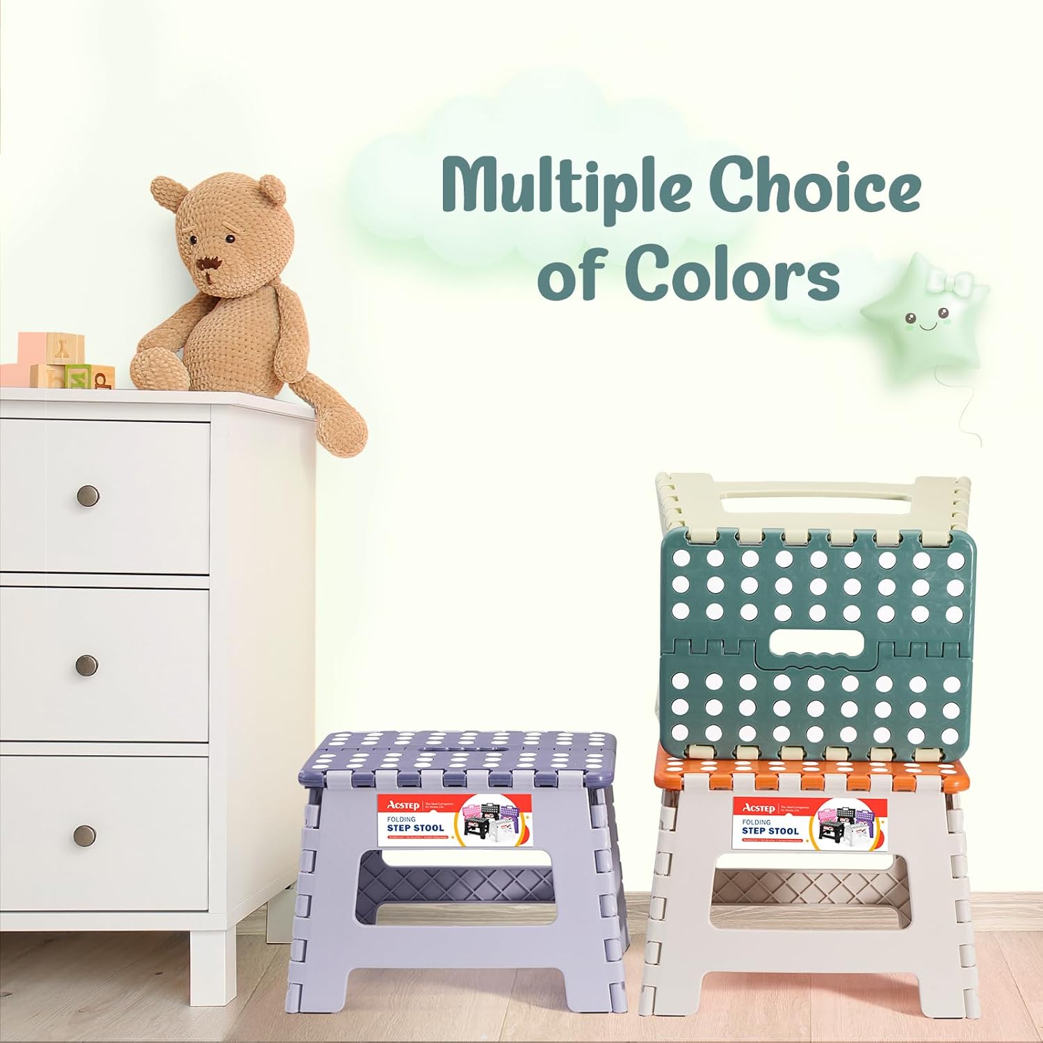 - Compact & Lightweight Design: Ideal for limited spaces. The ACSTEP Folding Step Stool's portable design makes it a must-have in every household. Its lightweight yet sturdy structure provides the reliability you need for everyday tasks.