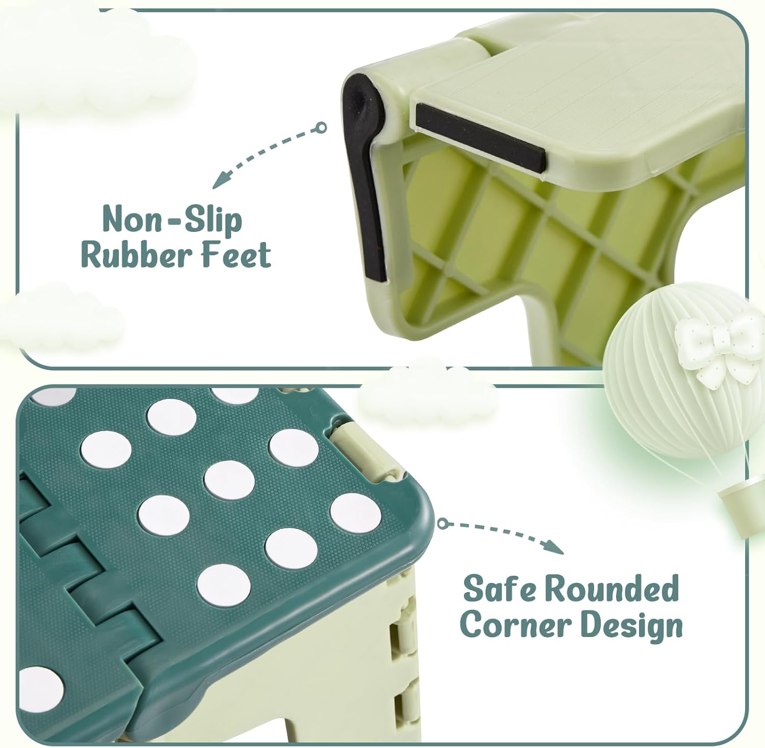 ACSTEP 9 Inch Folding Step Stool 300 LB Capacity Plastic Foldable Step Stools for Kids and Adults, Folding Stool Suitable for Kitchen, Stepping Stool with Handle Bicolor Green Small Step Stool 1PC