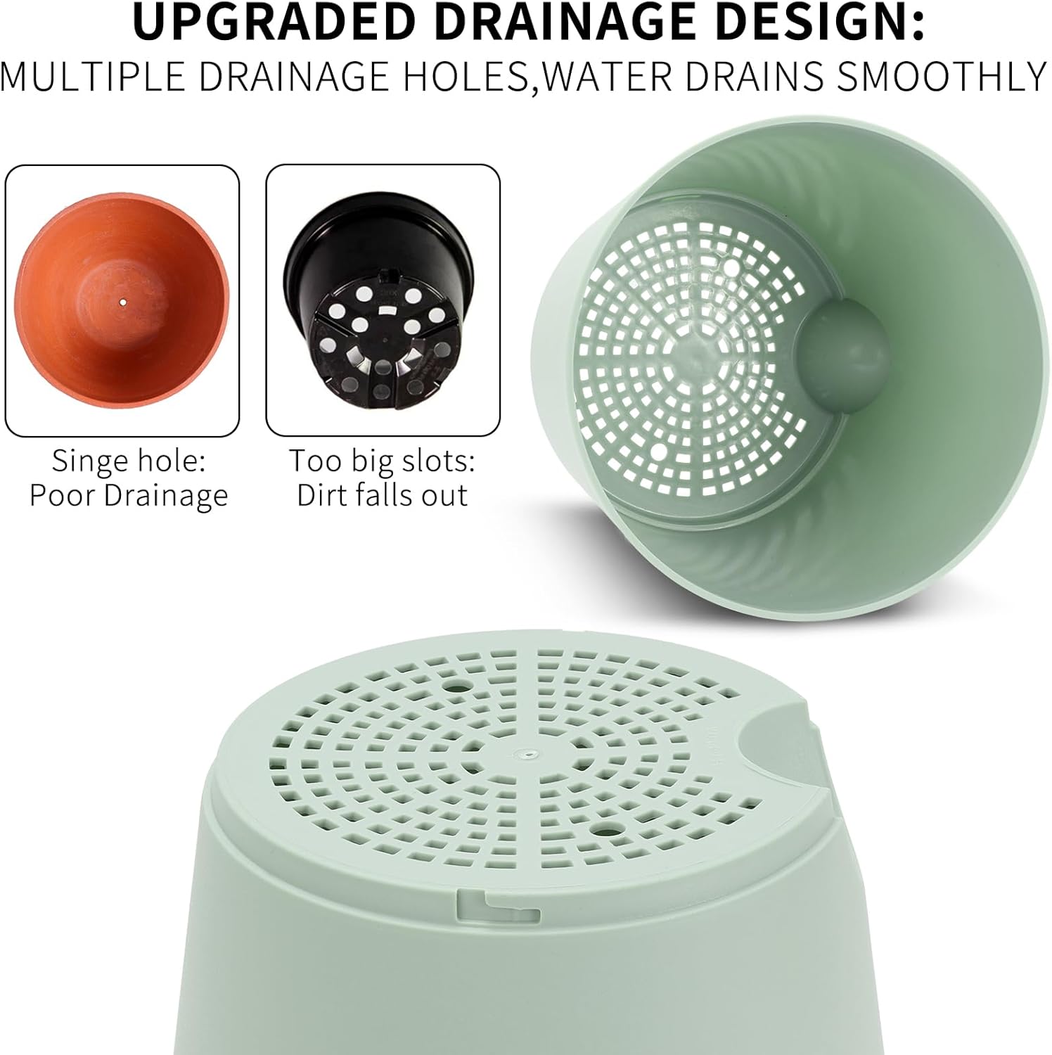 - 【Environmental Material】Made of durable recyclable plastic,solid plastic plant pots protect plants and soil. Premium polypropylene planters feel sturdy in hand but not too heavy. Thick sidewalls 4mm in size keep everything in place.