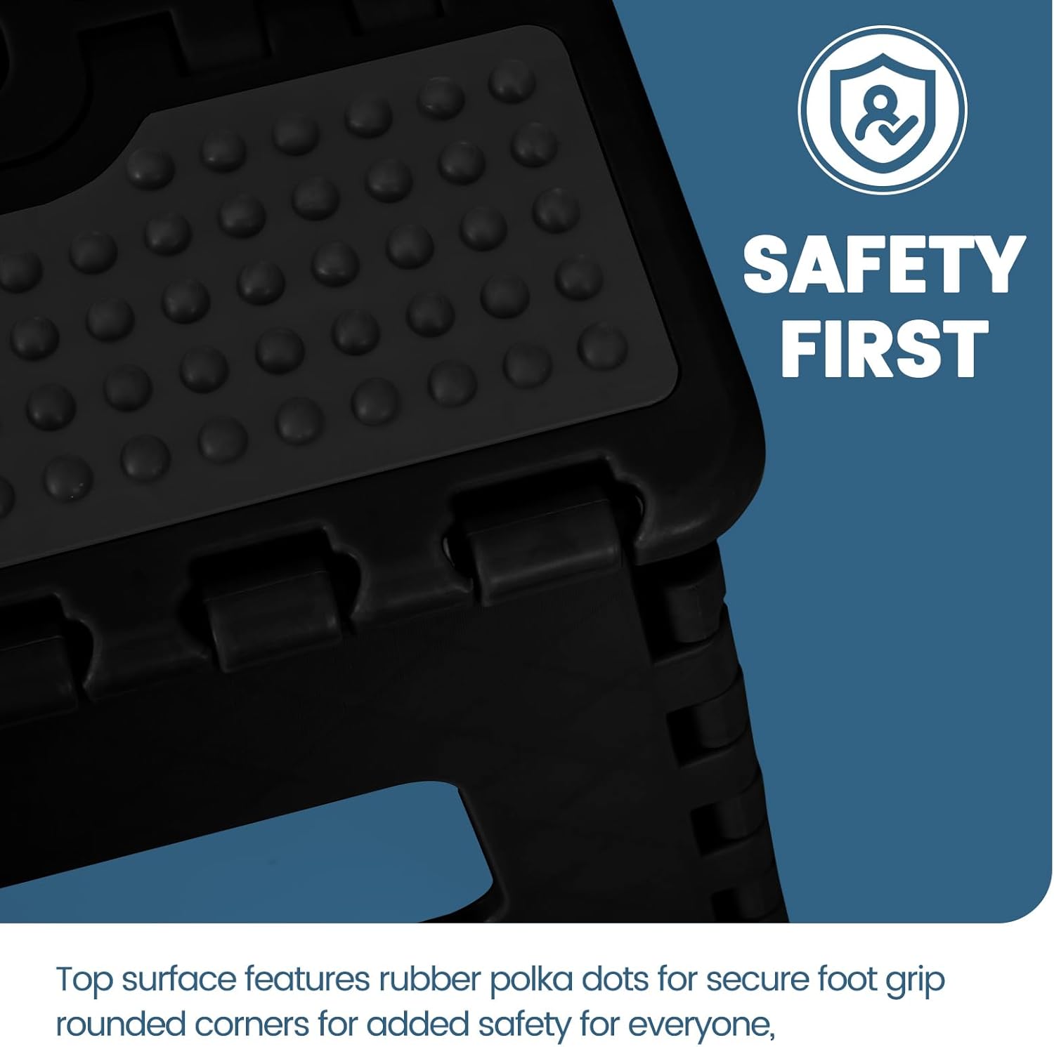 ACSTEP 9 Inch Folding Step Stool 300 LB Capacity Non Slip Foot Stool with Handle Plastic Foldable Step Stools for Kids Stepping Stool for Bathroom Black Small Step Stool (1 PC Black)
