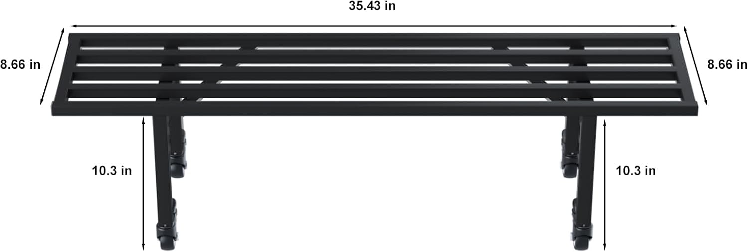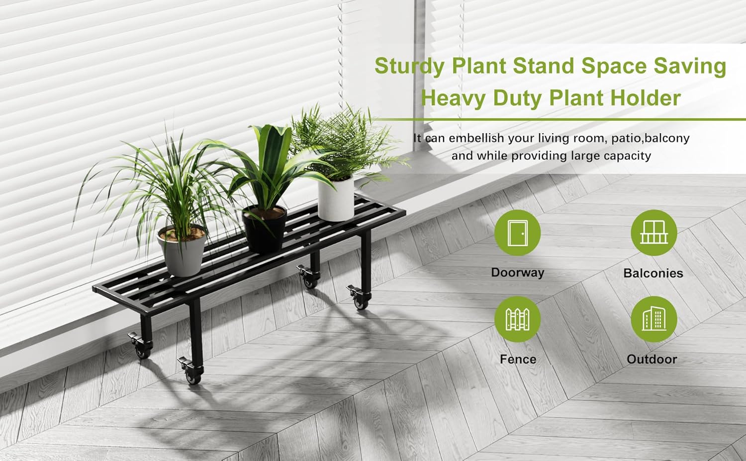 Zhongma One Tier Metal Plant Stand with Wheels,(35.43 L x 8.66 W x 10.3 H) Heavy Duty Plant Holder for Home, Window,Garden, Plant Lovers, Display Stand
