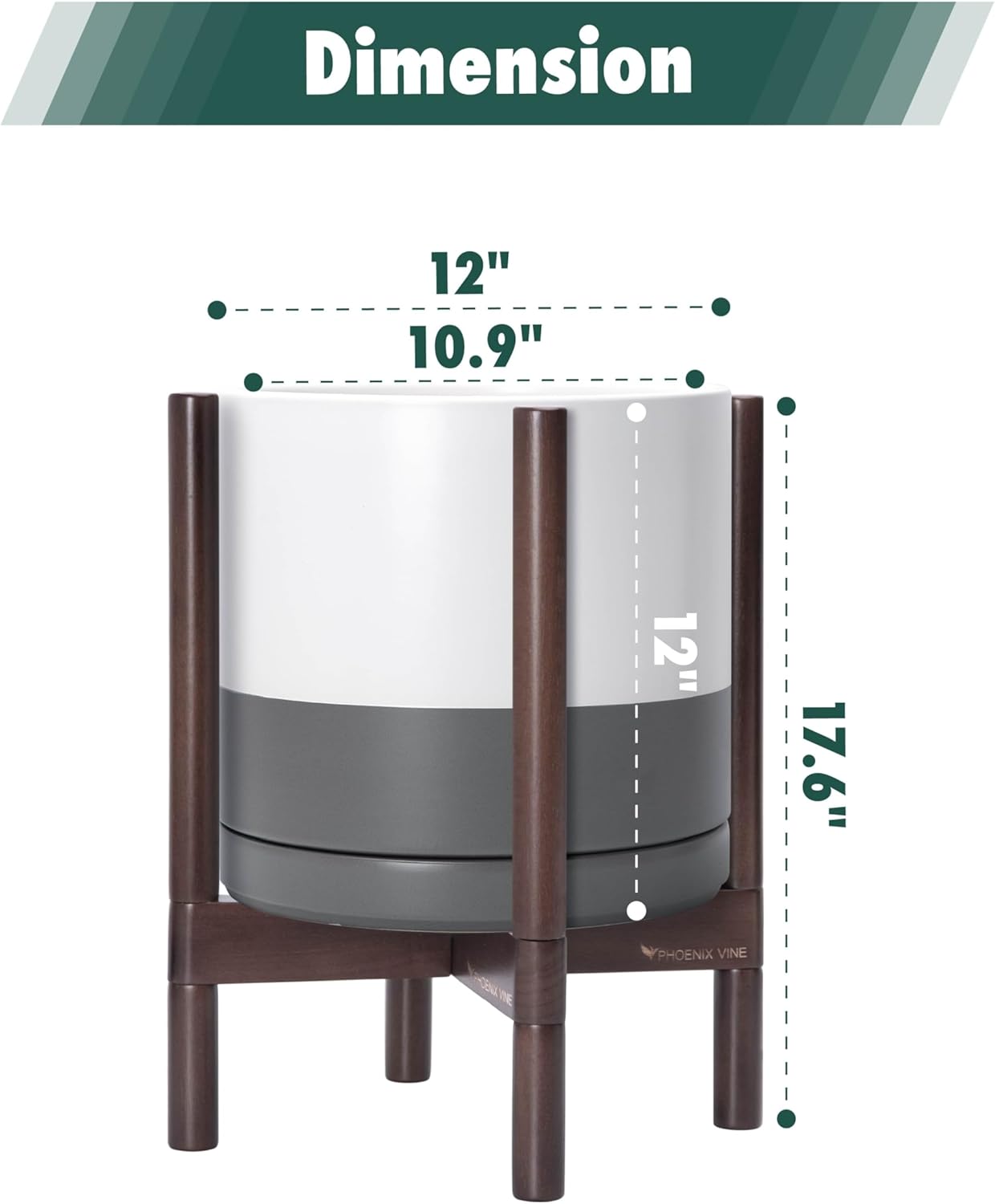 - 12 Inch Pot with Stand Set: Planter size: 11.8"Diameter x 11.8"H; pot with stand total height: 18.5 inch.