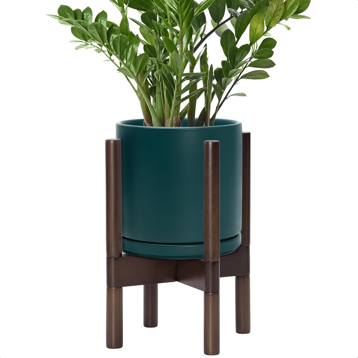 - A Complete Set: Mid-century ceramic planter, combined with a sculptural, solid wood stand that match perfectly together and looks great in anywhere.