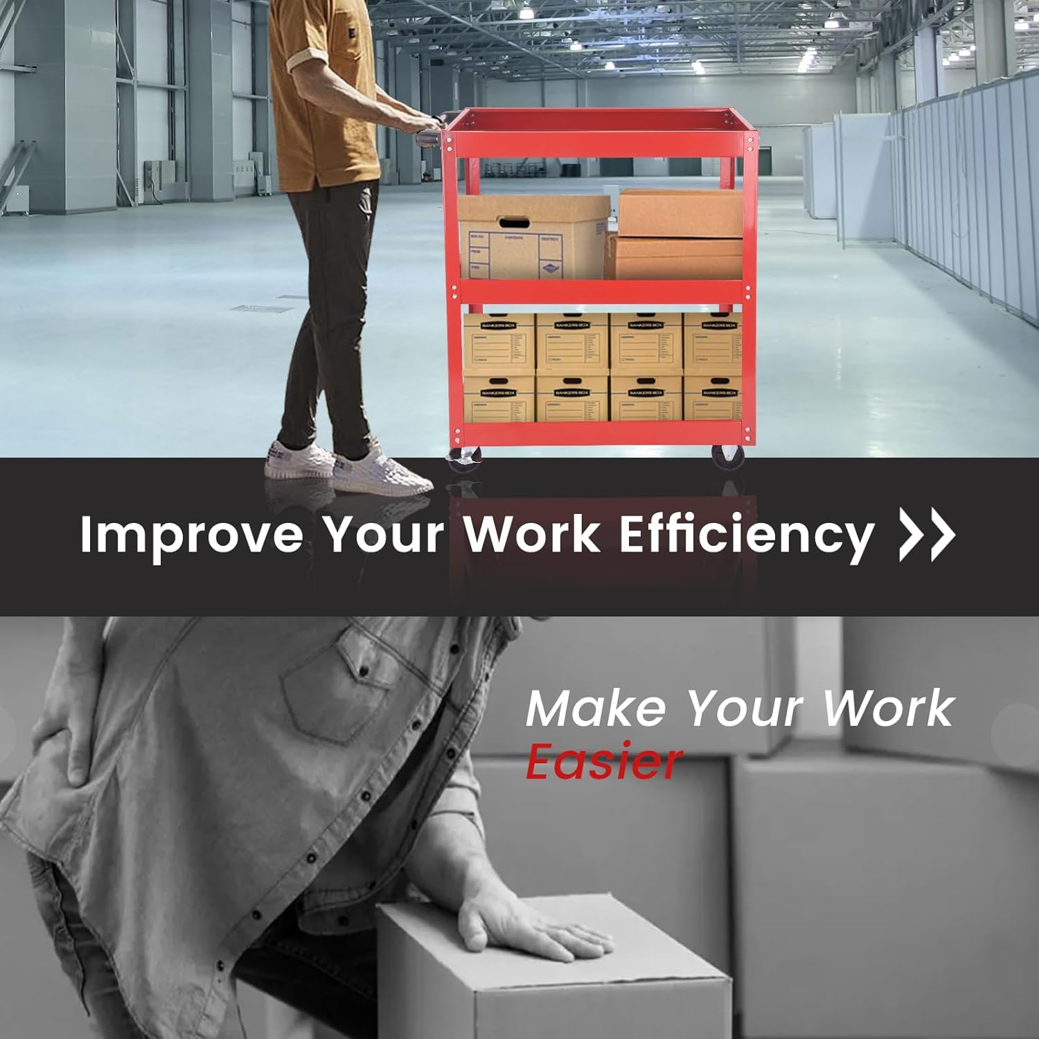 - 【Versatile Utility Cart】Our Commercial Rolling Tool Cart is constructed with versatile design, which can be utilized in various occasions, such as warehouses, home, office, restaurant, workshop, garage, repair shops etc. With the humanized handle and rolling wheels, you can move it everywhere.