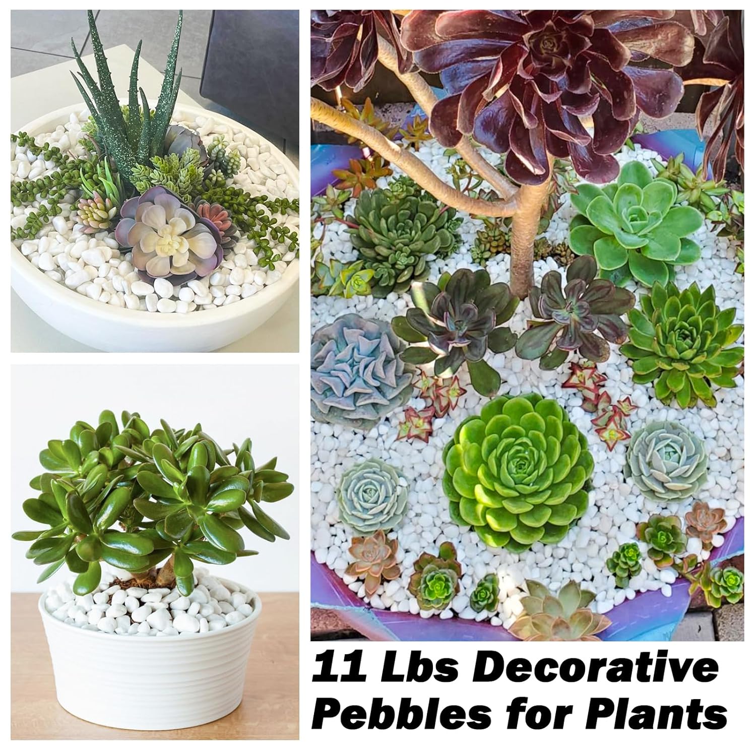 - Natural Pebbles for Plants: Unlike wood mulch, which will deteriorate, these 1 - 2 inches large stones are more cost-effective and will retain their original color after being used for a period of time. These snow-white river rocks are great decorative stones for your bamboo plants, succulent plants, and various indoor and outdoor house plants.