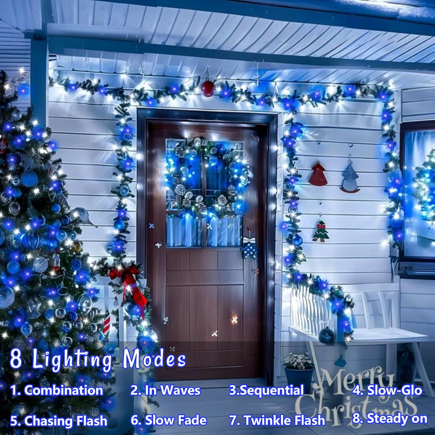 - 8 Lighting Modes Solar Christmas Lights: Blue&White solar christmas lights outdoor are 8 different settings on the back of the solar panel to creates a dreamy feeling and your garden looks like a enchant fairy land at night. Blue&White christmas lights are an amazing addition to your yard, create a pleasant mood for events, parties or weddings