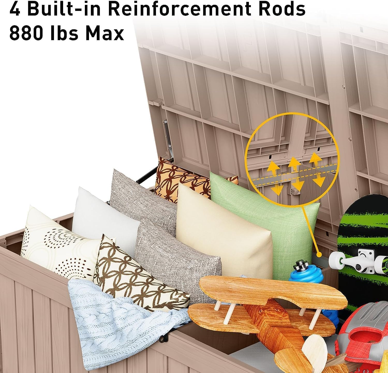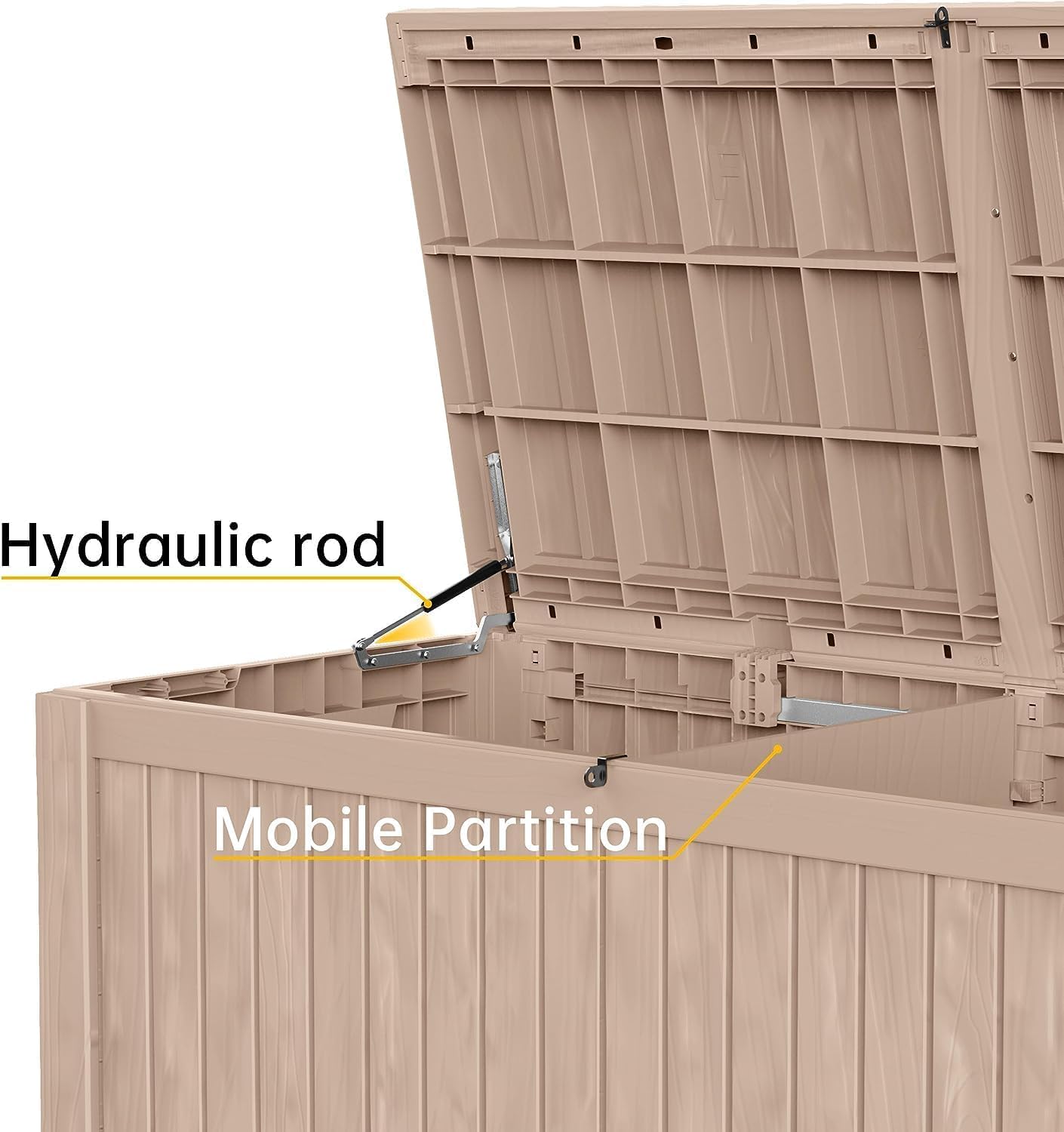 - SAFETY & LOCKABLE FEATURE - Equipped with a hydraulic lid support for smooth and safe opening and closing, preventing accidental pinching. The integrated lockable mechanism adds an extra layer of security for your outdoor valuables.