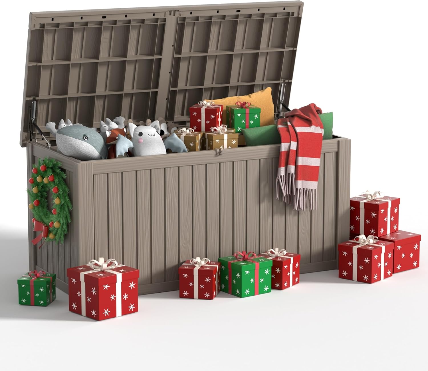 - SPACIOUS STORAGE CAPACITY - This outdoor storage box offers a generous 182-gallon capacity, providing ample room for patio cushions, gardening tools, pool essentials, and more. Keep your outdoor belongings neatly organized and well-protected with ease.