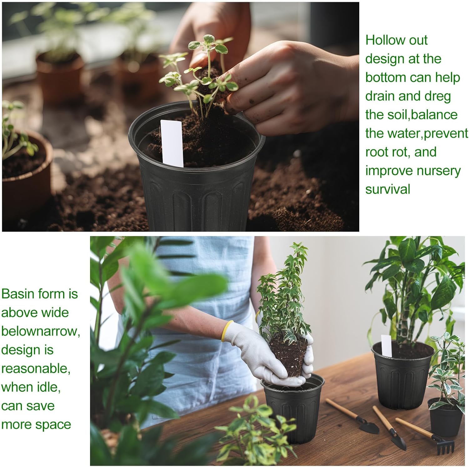 - Identifiable Seedlings: the handy seedling labels of plastic nursery pots allows you to keep track of each plant's identity, progress, and specific needs; This helps streamline the care process, particularly beneficial for larger collections of plants