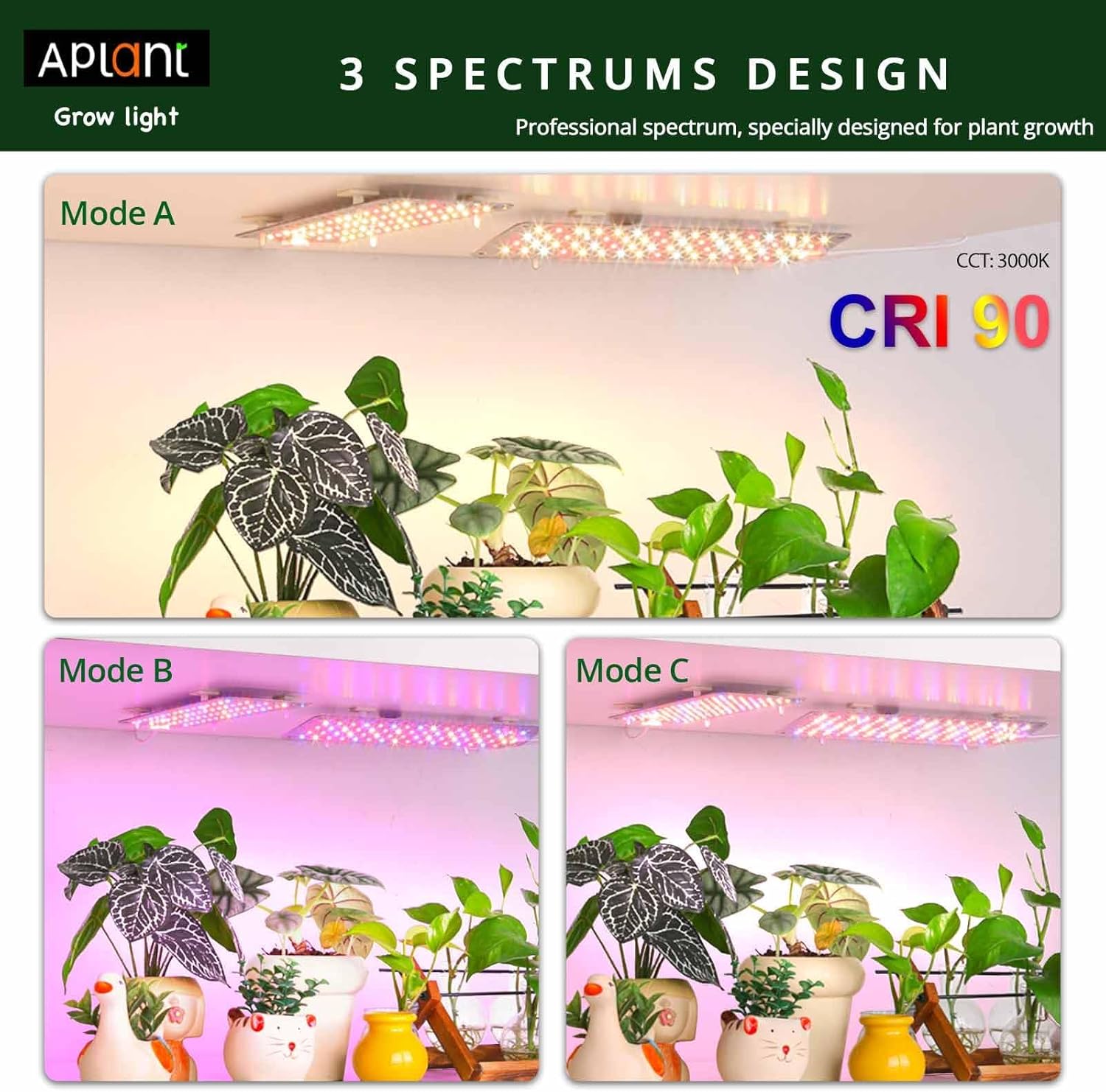 - 3 Spectral Modes: APLANT plant light for indoor plants features 3 spectrum modes: A for the nursery promotes photosynthesis and seeding growth; B for all stages, effectively promotes plants' growth; C for flowering and blooming. Ideal indoor plant lights