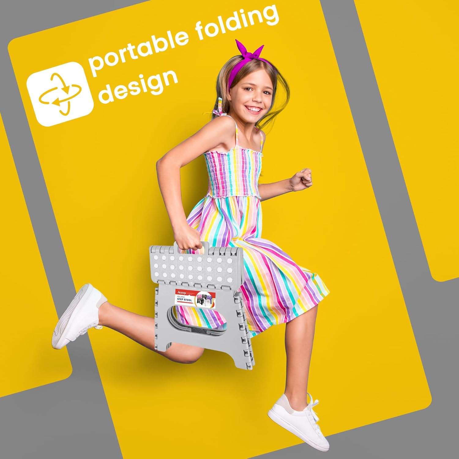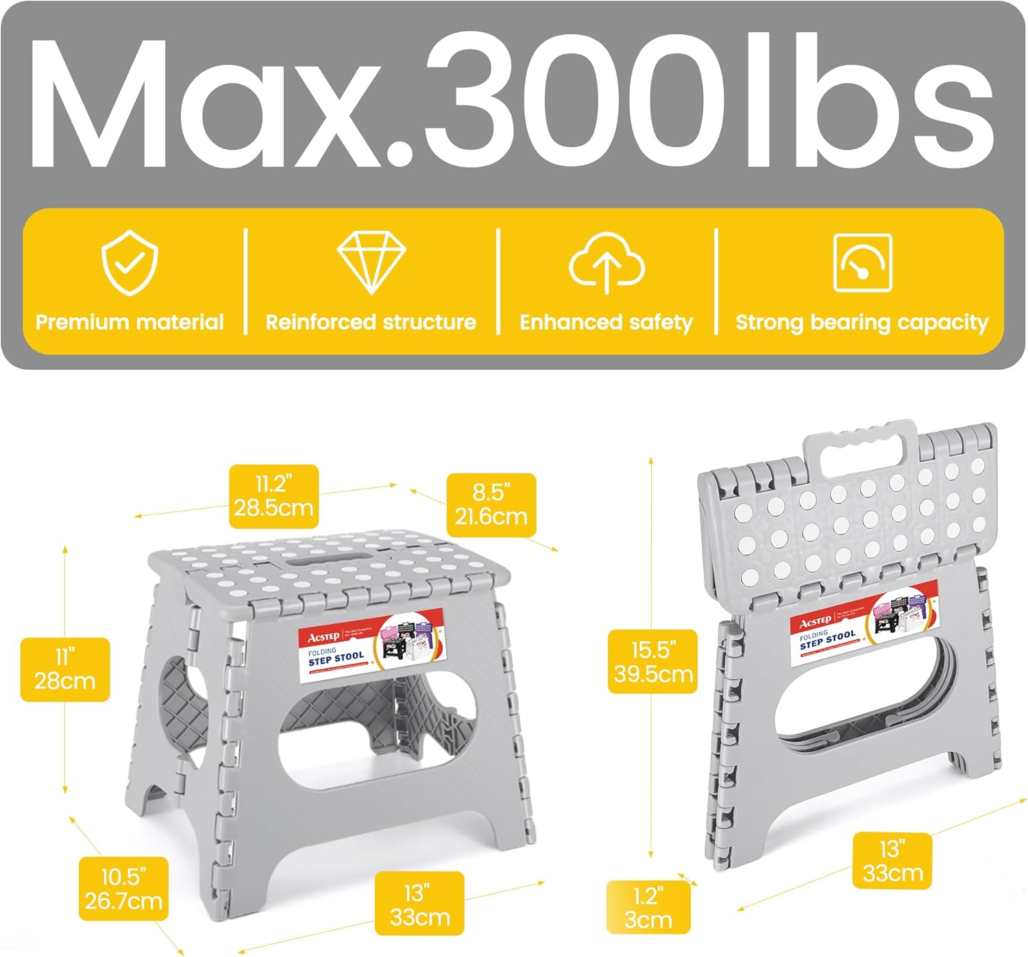 - Strong & Sturdy: The material is made of tough, Sustained, heavy-duty plastic that won't collapse or shake easily, by high quality standards. ACSTEP folding step stool has been approved by EN 14183 Certificate, all products are qualified factory test.