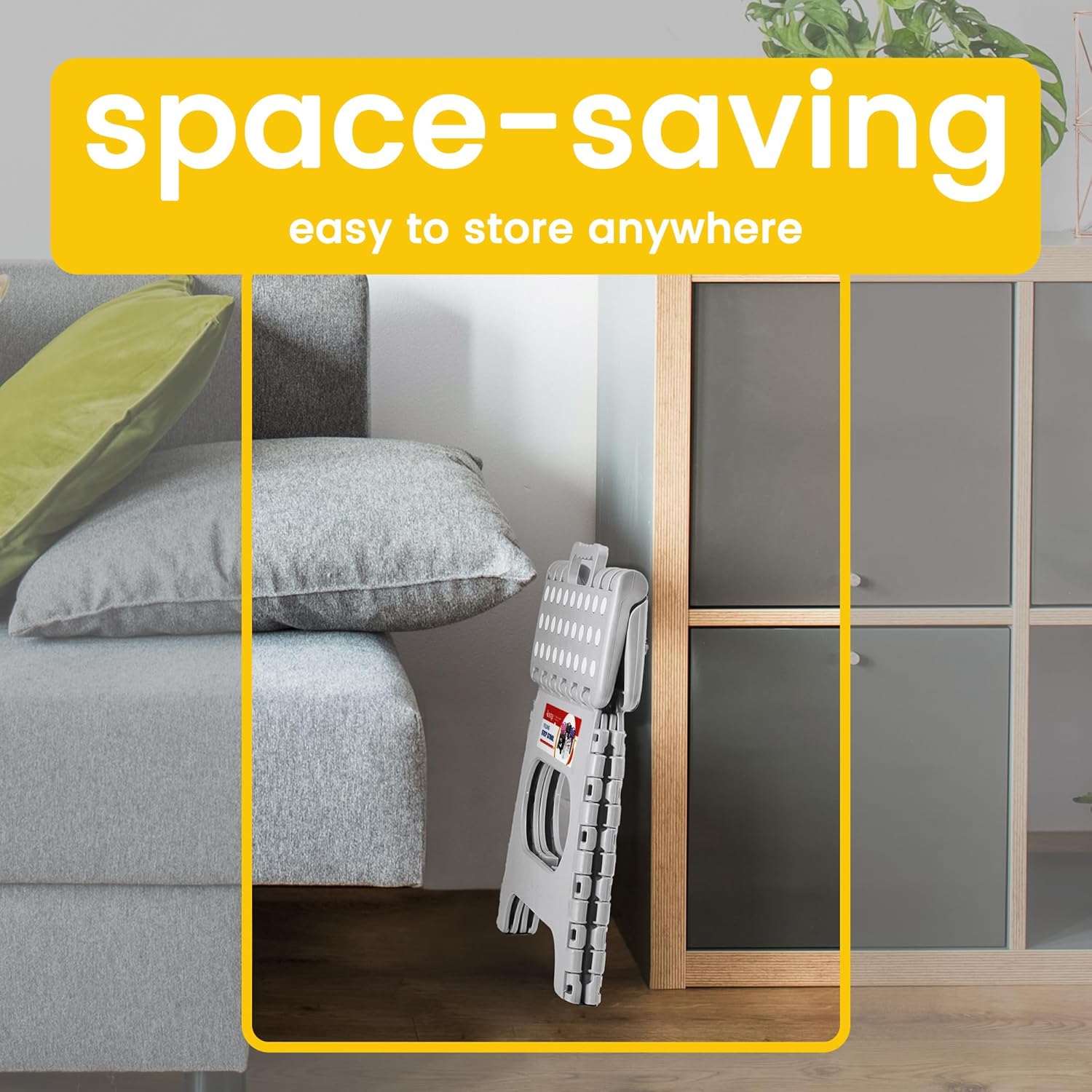 - Space Saving & Portable: Folded to only 1.7" wide, easy to store in corners of bathrooms, kitchens, bedrooms, etc. to keep your home organized. The foldable step stool opens and closes easily with just one hand, and can bring it with you for going out.