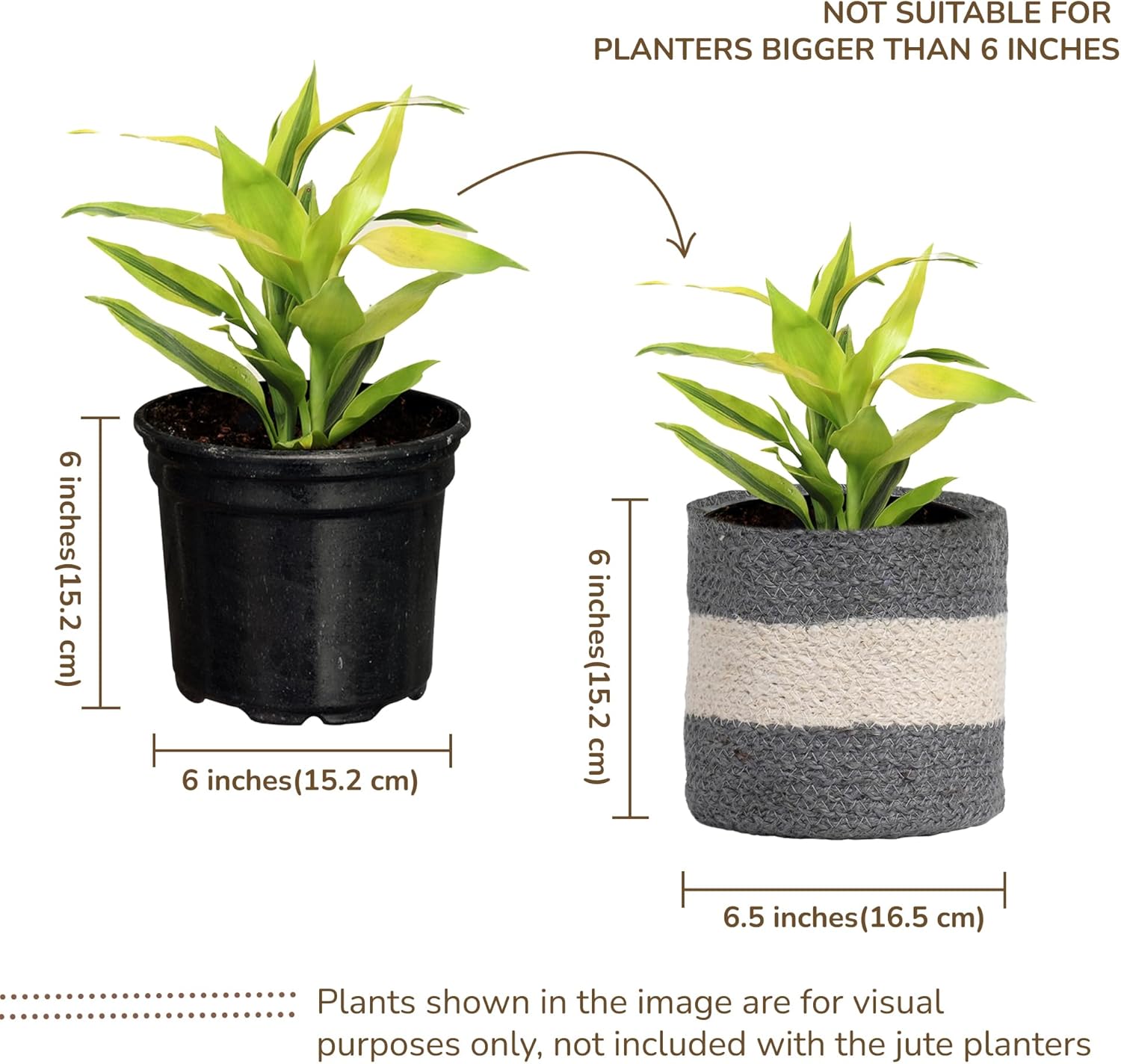 - FITS UPTO 6" POTS - CAREFULLY CHECK POT DIAMETER & HEIGHT: These jute plant baskets are designed to accommodate plants with 6 inches or below in diameter and height, making them perfect for indoor or balcony use. Please check the size of the pot you want to put inside these plant covers before buying.