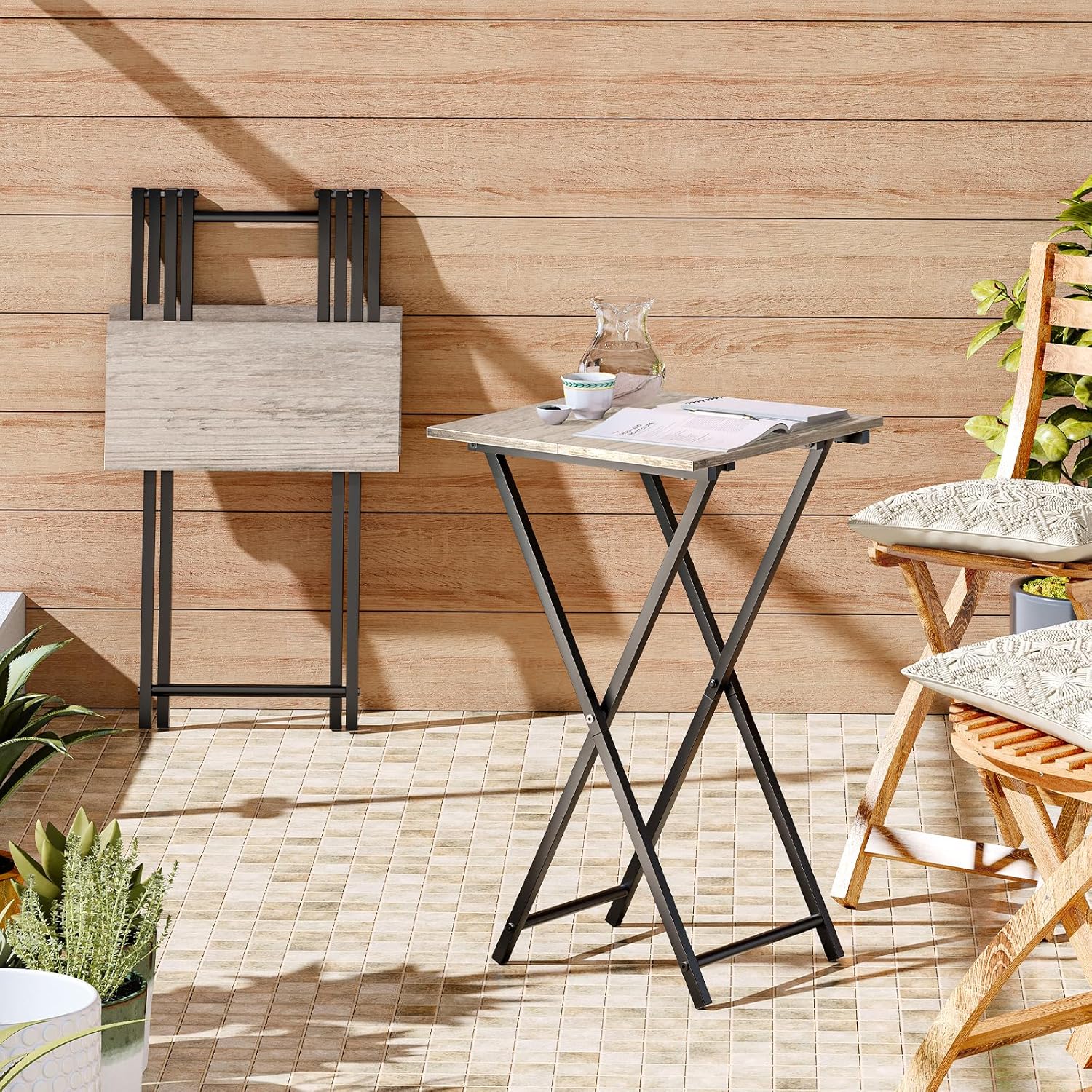- Multiple Advantages: Don't want the side table taking up too much space when not in use? This TV tray can easily be folded and stored under the sofa, freeing up more common space.When folded, the folding table is portable to be carried anywhere needed