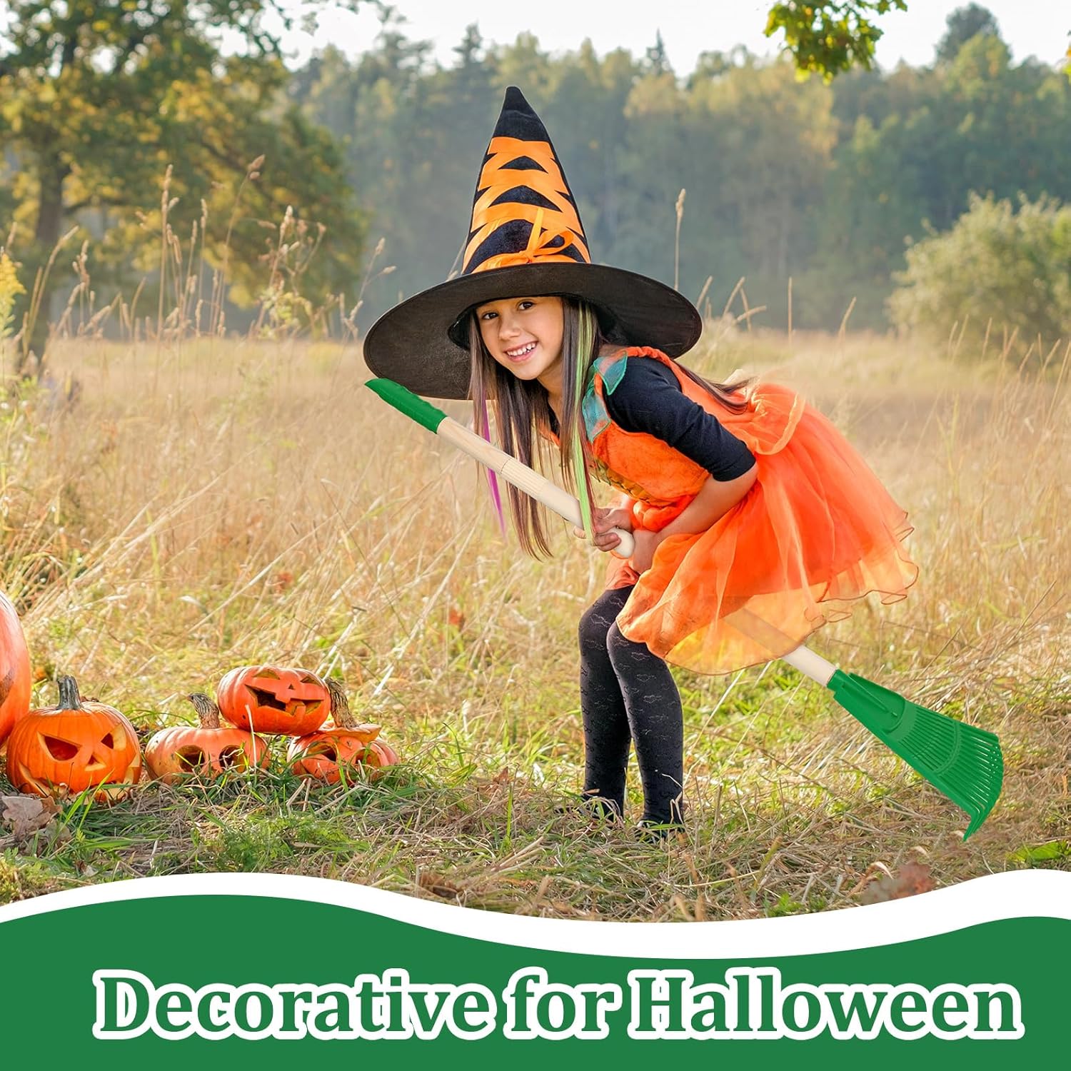 Therwen 8 Pcs Kids Rake 31" Child Size Plastic Lawn Rakes for Leaves Small Rake with Plastic Head and Wooden Handle Toddler Kid Gardening Tools for Leaves Gardening Camping(Green)