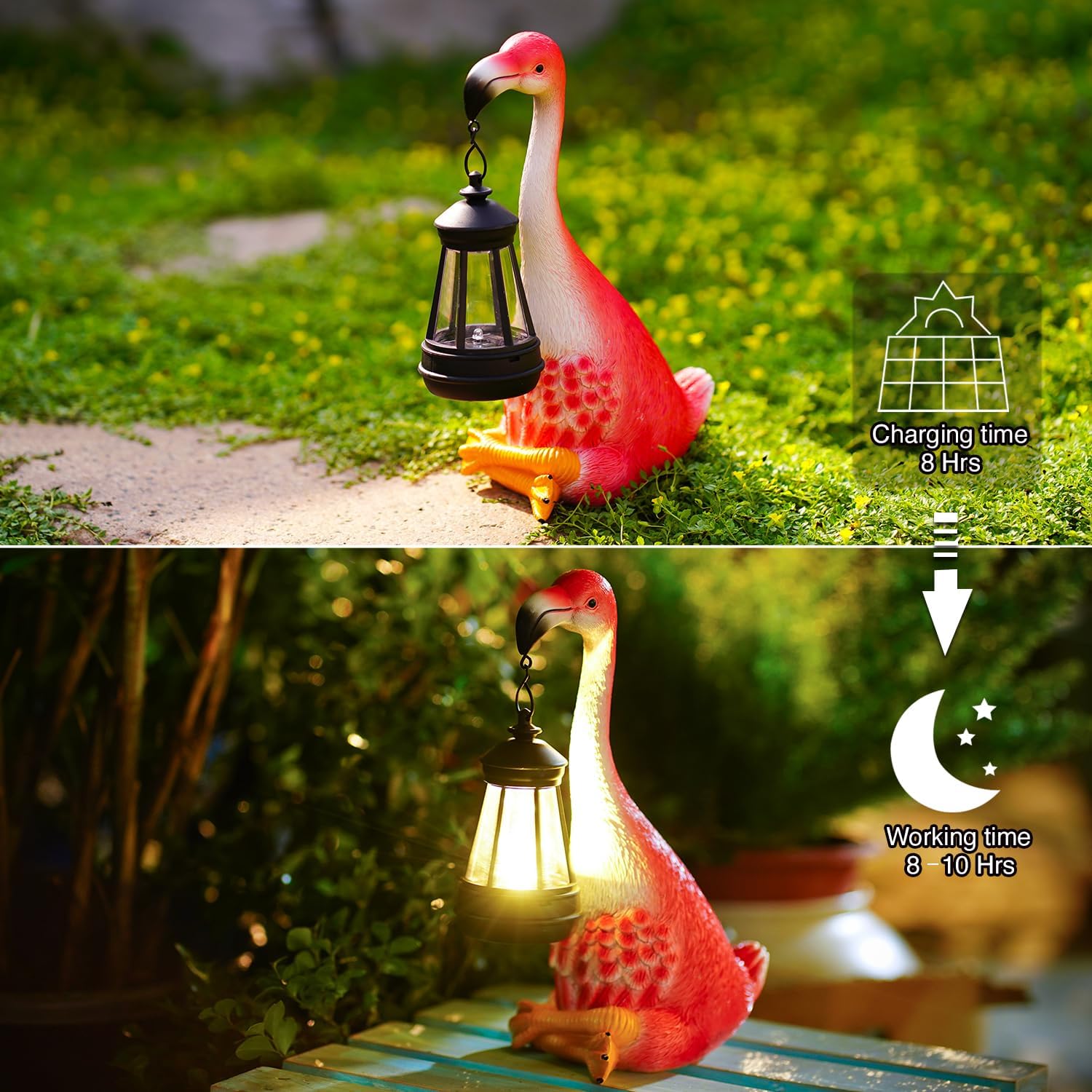 - 【Great Gift Ideas】: Surprise your loved ones, especially moms, with this unique and charming flamingo statue that doubles as a solar lantern