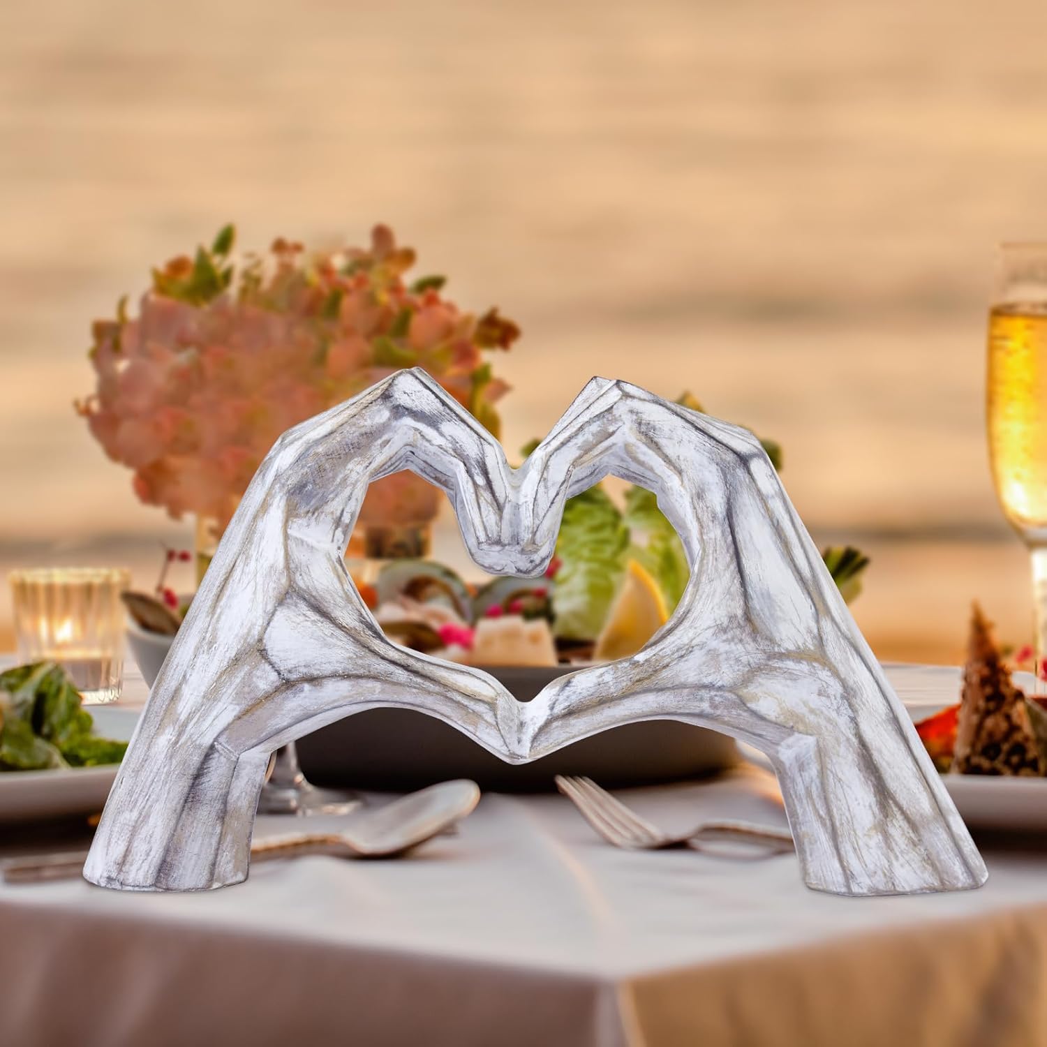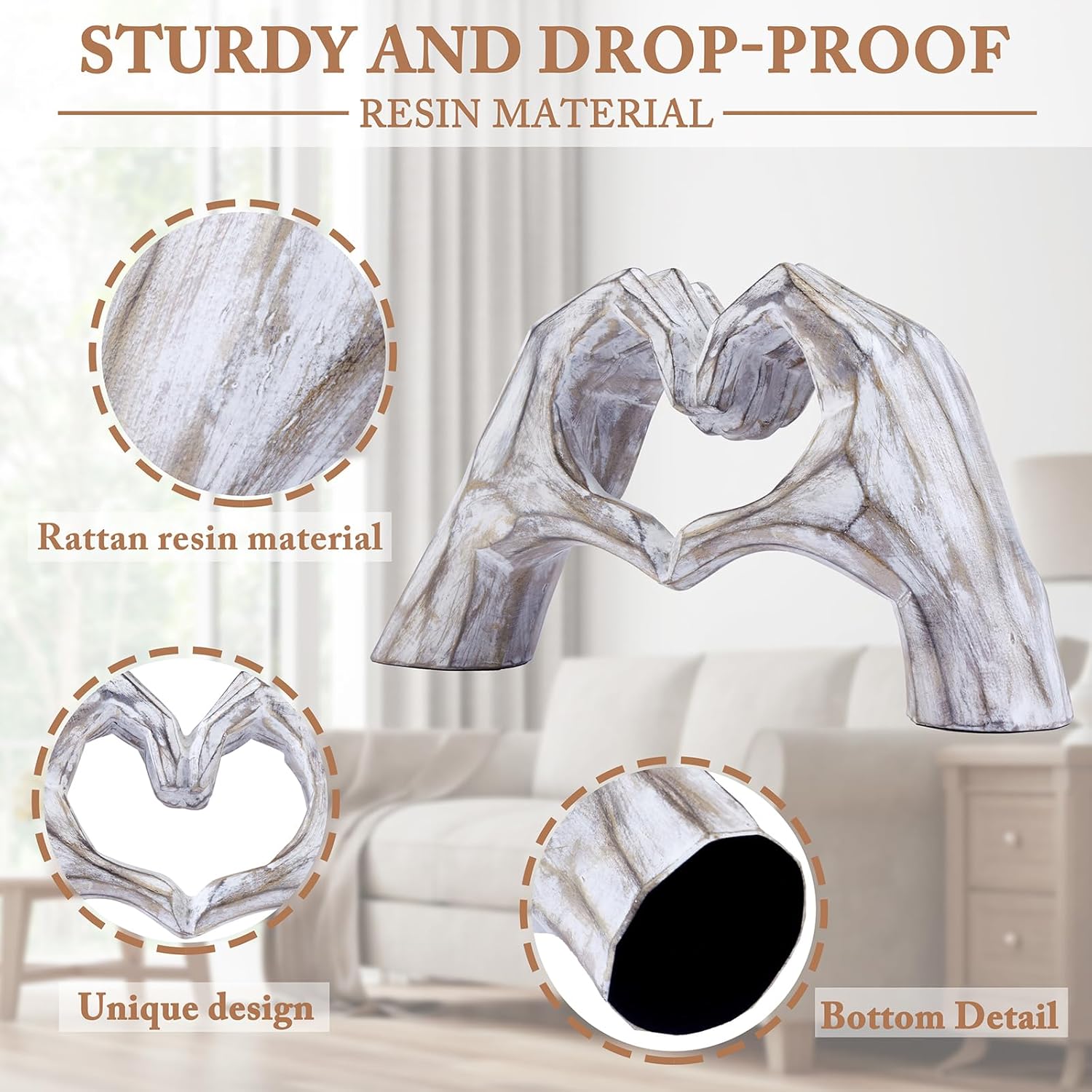 - [HEART HANDED SCULPTURE HOME DECOR]: Hand heart statue adopts sweet love gesture sculpture design; Nordic minimalist style resin handicrafts, love ornaments, modern love sign heart shape finger gesture statue, wedding for couple anniversary couple figurine. It is a whole pendulum and cannot be disassembled. Statue is perfect for home decor, room decoration, bedroom decoration, office decoration, living room decoration, hotel decoration, apartment decoration.