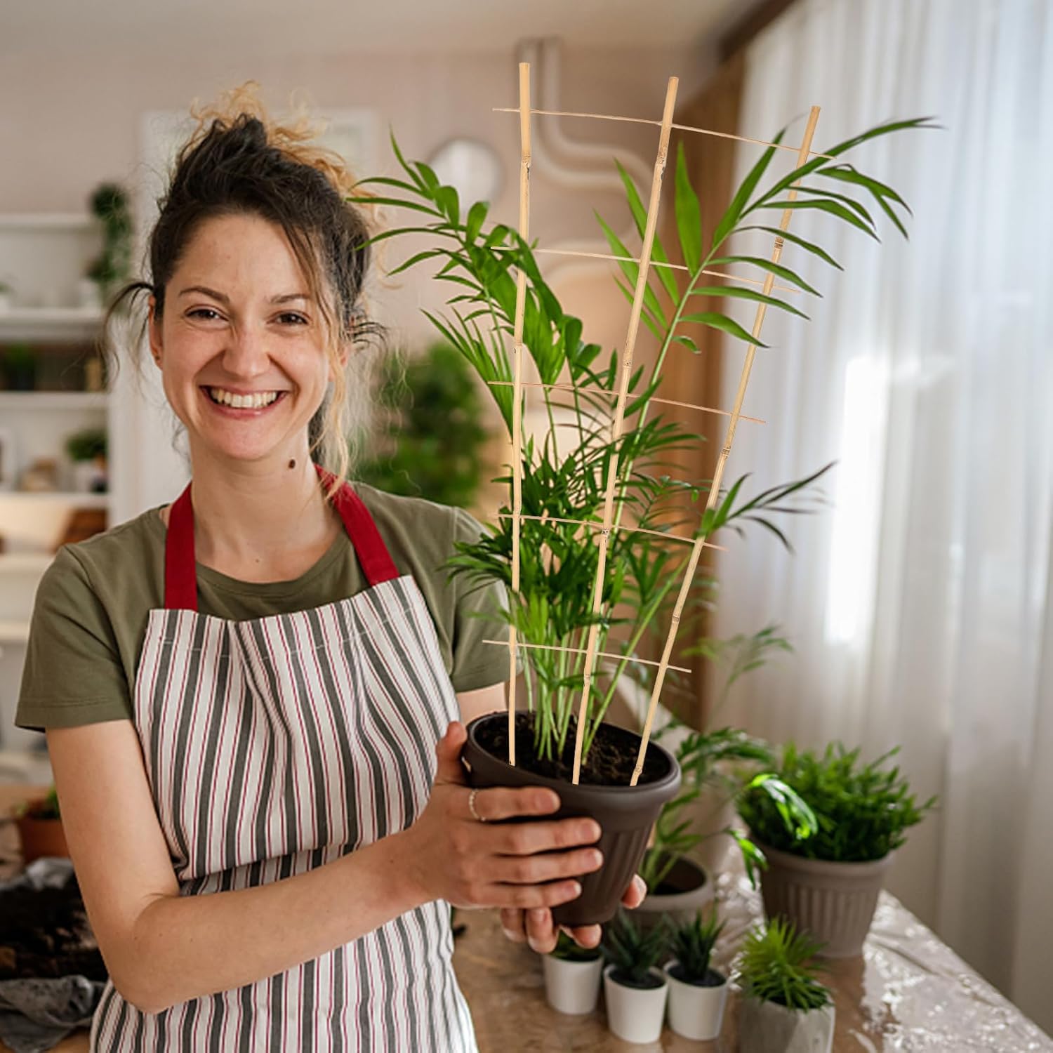 - QUALITY : Jollybower premium bamboo trellis are hand selected and made from natural and renewable materials. Bamboo plant lattice has been fumigated twice to ensure strong quality and long life. Small plant trellis are very flexible, durable and can support climbing plants, so our potted plant supports will not be easily blown down by the wind.