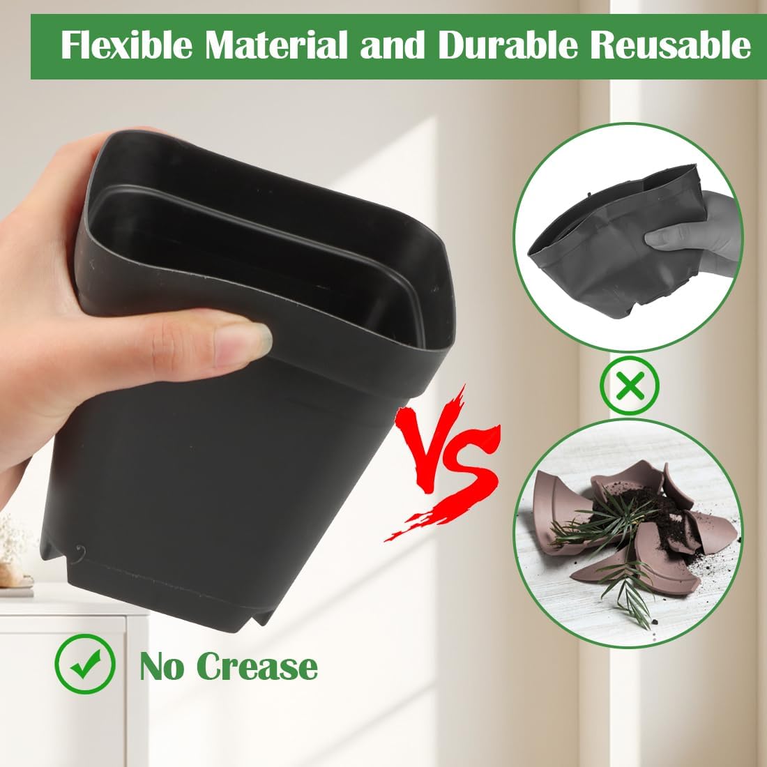 - 【Package Contents】Seedlings Plant Trays without holes 5 Pack, 3.15 inch high quality black square nursery pots 100 pcs. Please note: Newly produced items may have a slight odour.