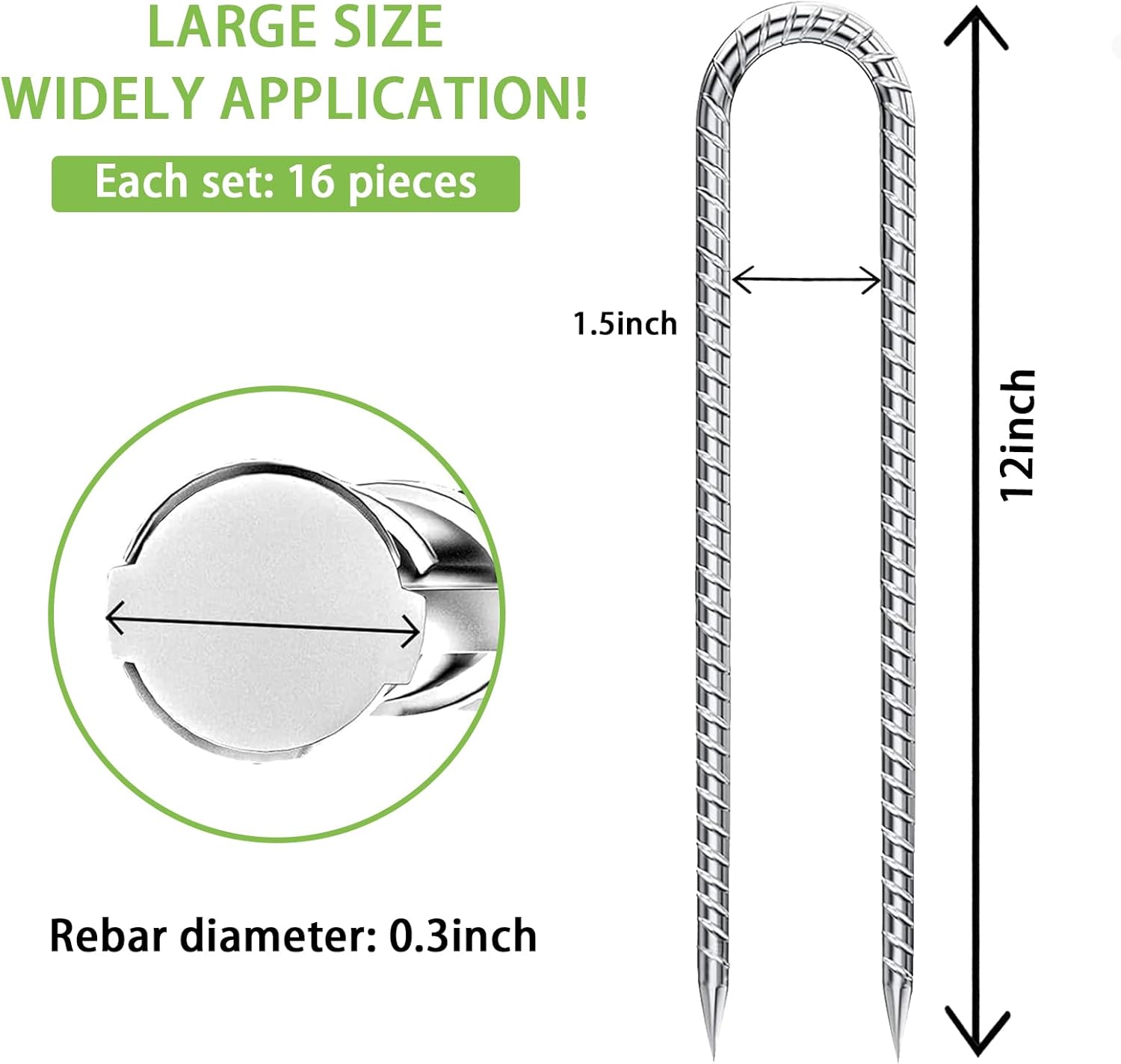- 【QNLONG Rebar Stakes】: Our trampoline stakes are each 12inch (30cm) long and have a cutting-edge bottom design to conquer any terrain with confidence! The surface of the ground stakes has a galvanized coating, letting you say goodbye to the worry of rust and ensuring repeated and long-term use!
