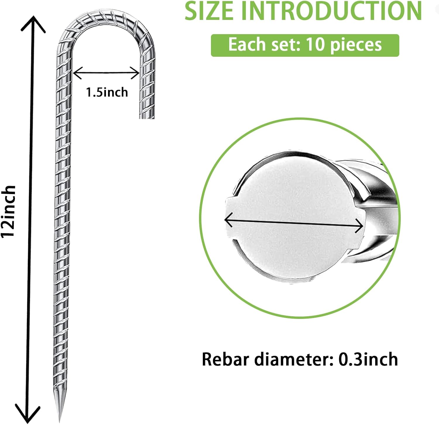 Ground-Stakes-Heavy-Duty-12-Inch, J Hook Rebar Stakes Galvanized Anti-Rust 10pcs Metal Stakes for Ground Heavy Duty Ground Anchors for Garden Dog Fence Chicken Coop Deer Fence