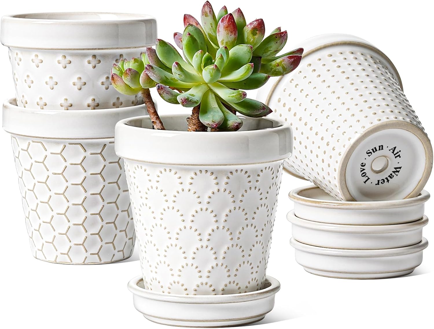 - Elegant & Space-Saving Decor: The beautiful arctic white glaze and raised embossed patterns add a touch of elegance to any small space. Their tiny footprint allows you to decorate areas where larger pots can't fit—on narrow bathroom counters, office cubicles, bookshelves, or as a cute centerpiece on a side table