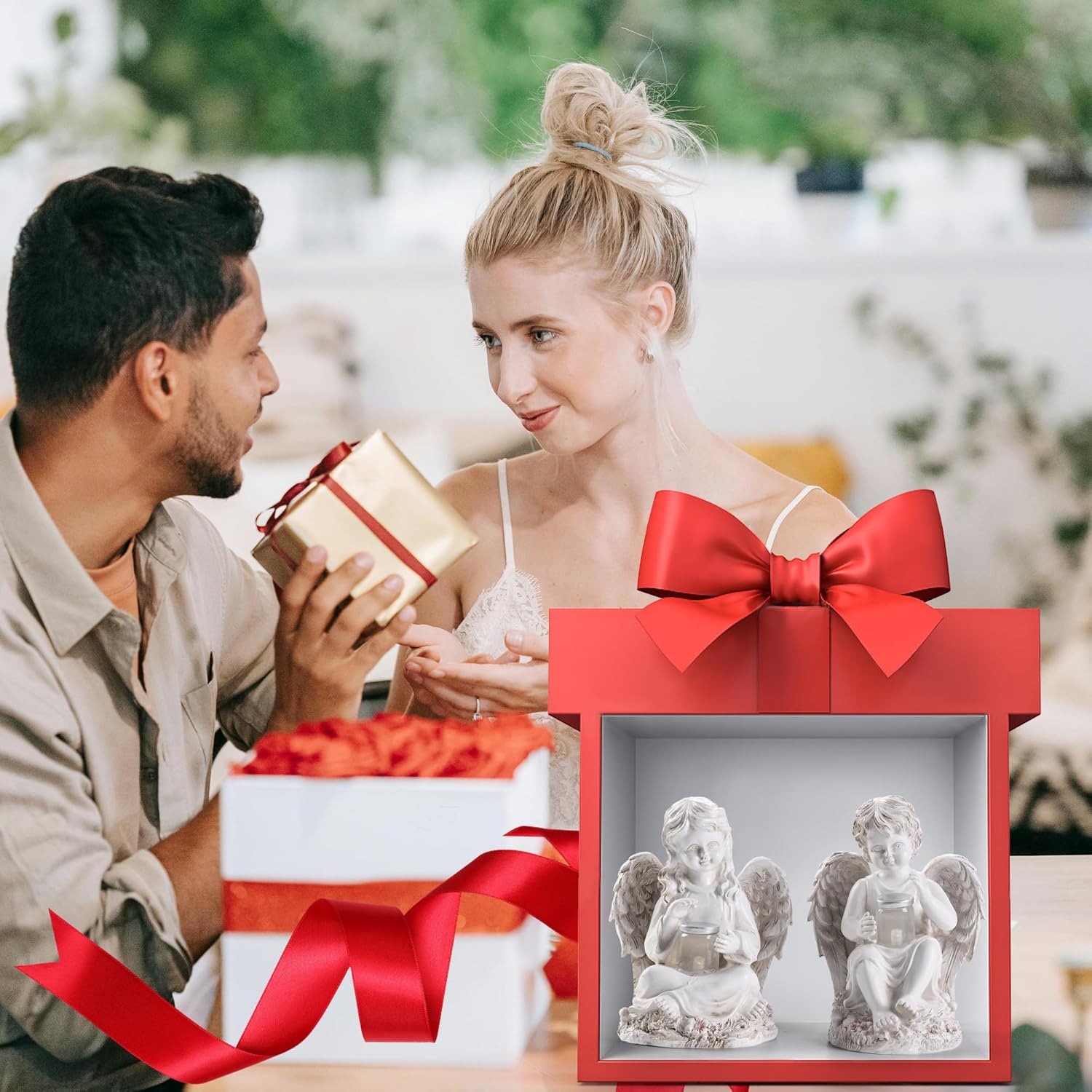 - [Angels Statue] You will receive a pair of charming angel garden sculptures; the baby angel statue depicts a boy and a girl. The exquisite carving techniques make these angel statues perfect decorations, lending a retro and elegant touch to any home