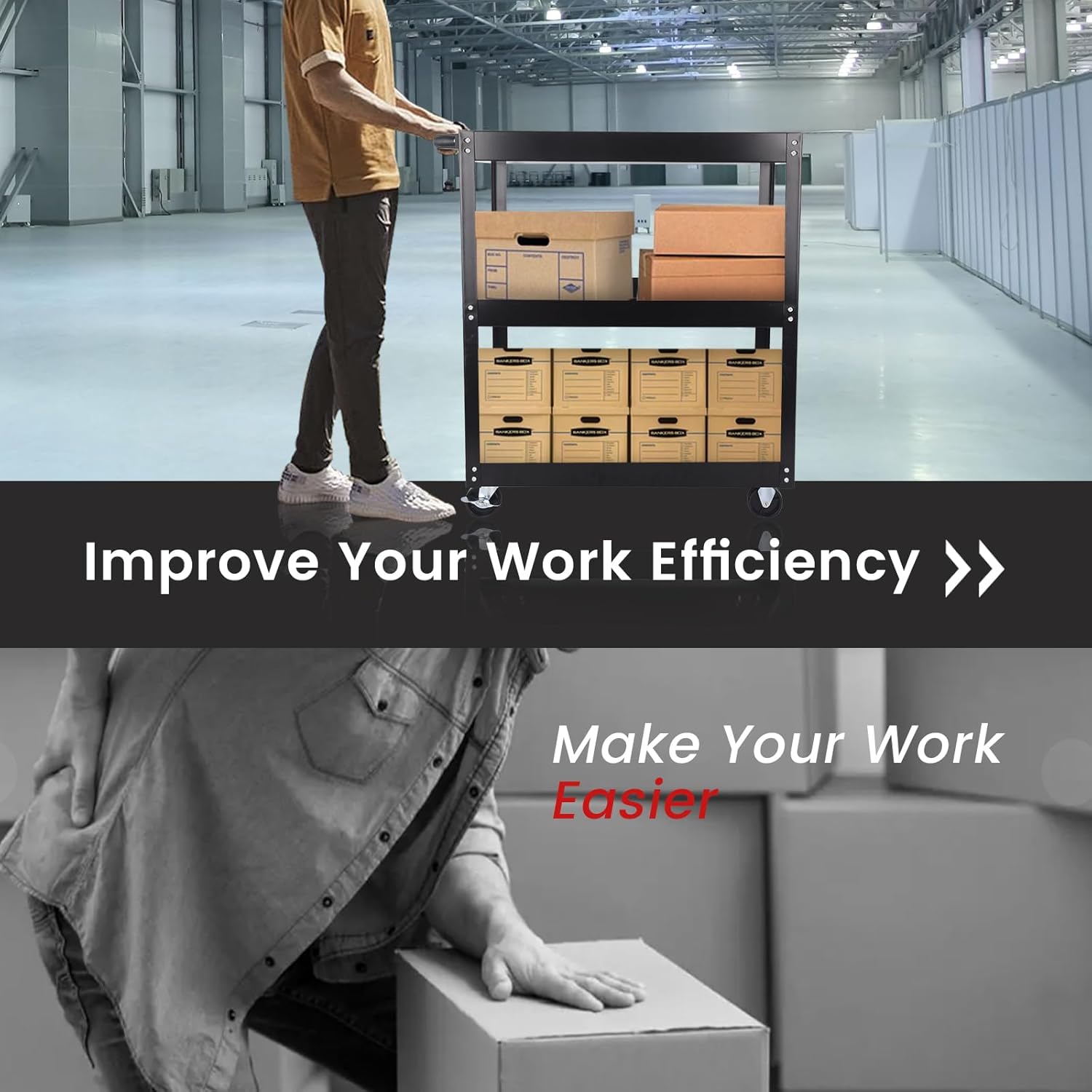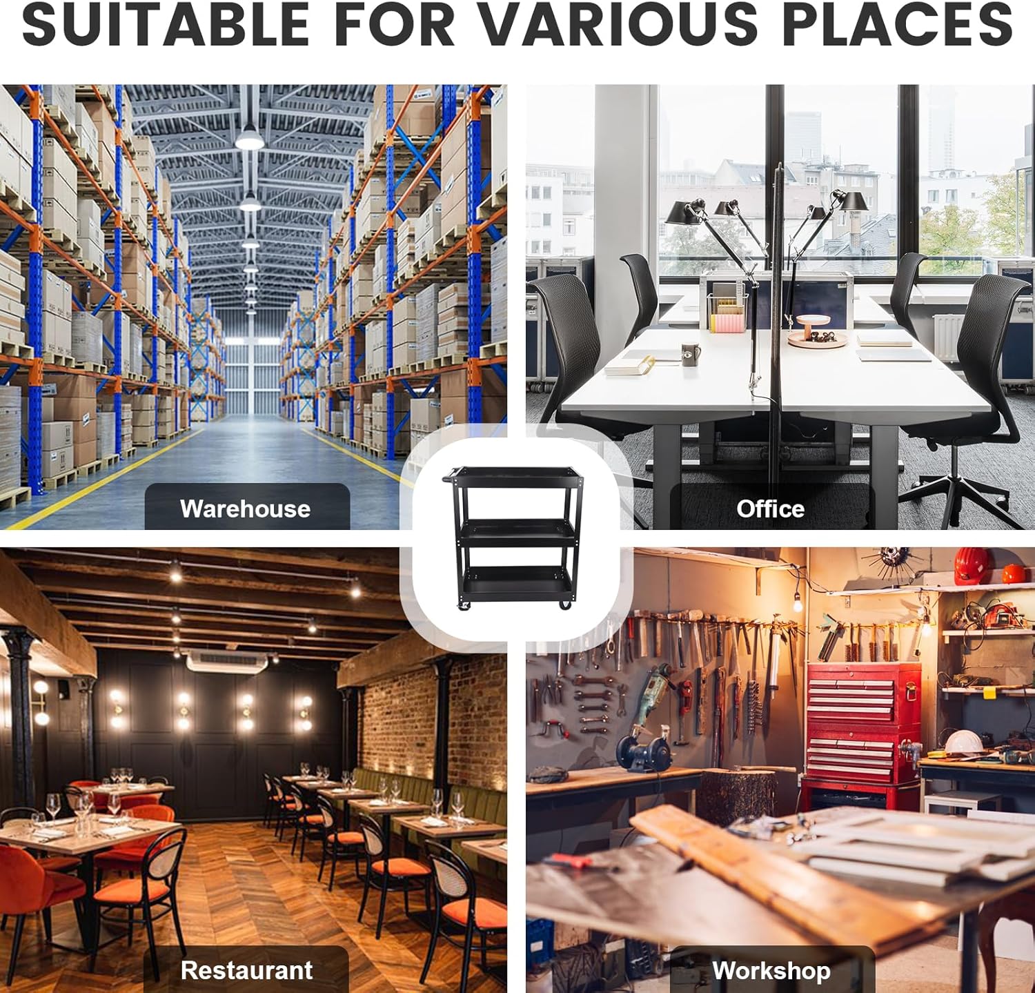 - 【Sturdy & Durable Construction】Adopting sturdy steel construction, 3-Tier Commercial our utility carts are made of 1.2mm galvanized sheet and heavy-duty steel with a premium paint coating to prevent flaking. It is noted for it’s durable and sturdy characteristic. So the durable shelves won't rust or dent easily, and can be a great addition to your work area. And this tool cart has high load-bearing capacity which can hold up to 110 lbs each tier.