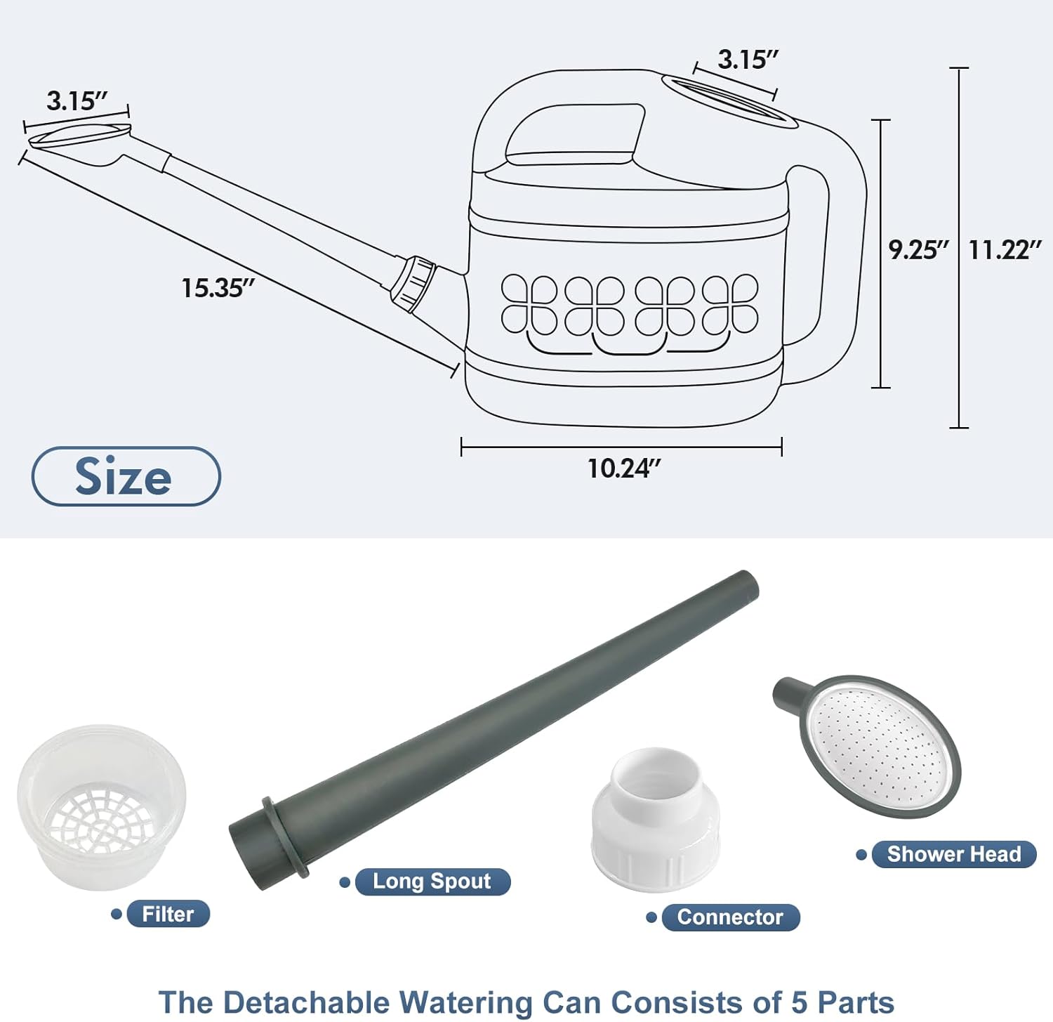 - [PRECISE WATERING, WATERING FLOWERS WITHOUT WORRY]-Plant watering can has a removable long spout, easy to carry and store, when installing, pass the connector through the spout and screw tight, seals well with no leak. Long spout watering can easy to reach distant plants, watering easily without bending over or tilting it too much, it easy to control the overall water flow, directing water exactly where it is needed, allowing every part of the plant to fully absorb the water.