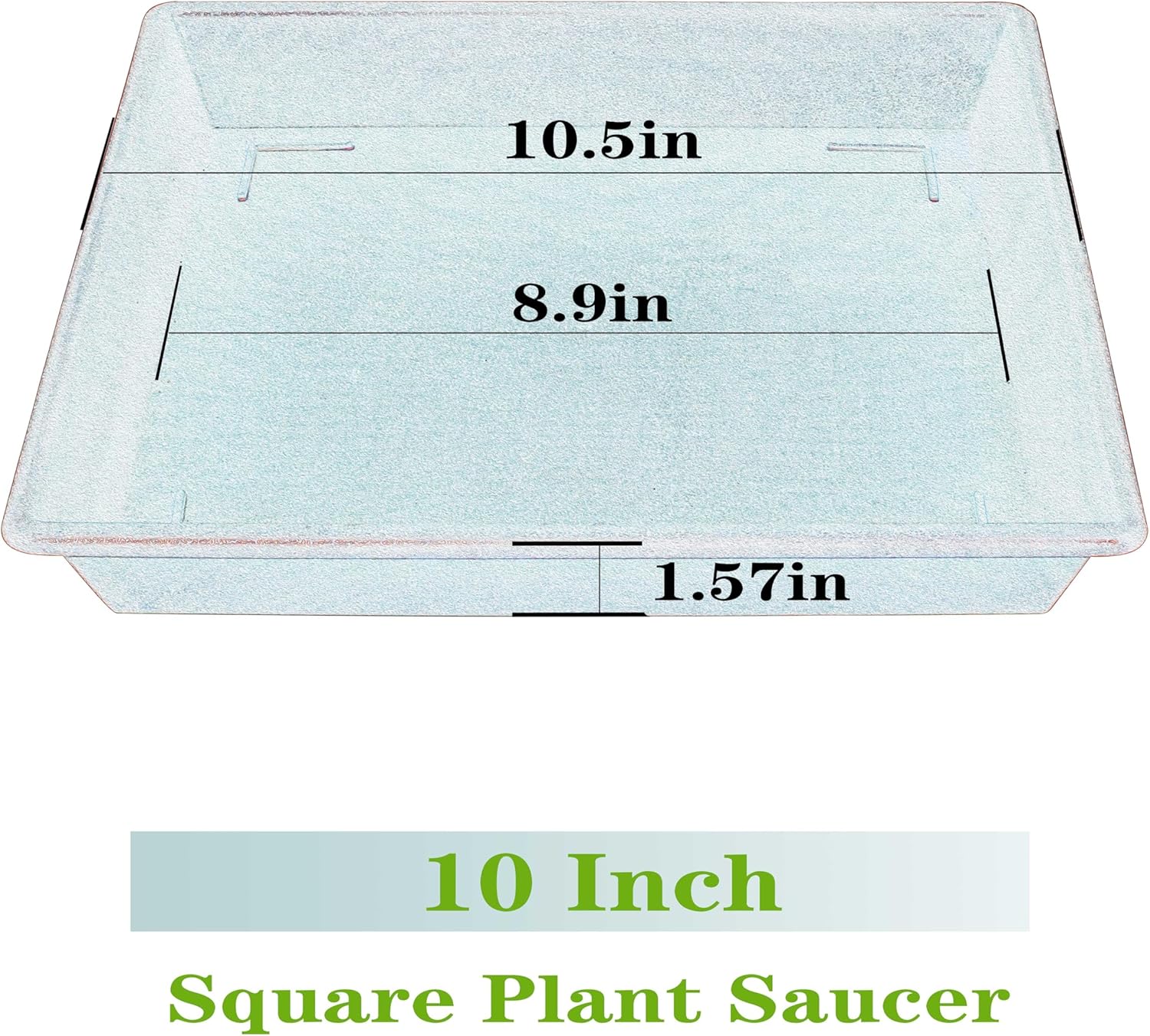 - Square Plant saucer 10 inch for indoors, This package inchudes 5 pack black 10 inch plastic square plant saucers, Each square plant saucer 10.5 inches at the top and 8.9 inches at the bottom, It can be used indoors and outdoors plant tray.