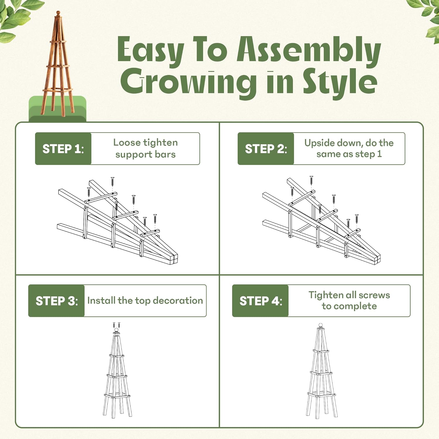 - 💐 WEATHER-READY GARDEN TRELLIS: The garden trellis for climbing plants withstands outdoor conditions effortlessly; The obelisk trellis design ensures sturdy plant support while enhancing the style of any garden